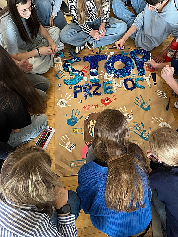 W dniach 29 września - 3 października 2025 r. odbyła się ogólnopolska inicjatywa Ministerstwa Edukacji Narodowej „Tydzień o Budowaniu Relacji” i „Tydzień o Przeciwdziałaniu Przemocy Rówieśniczej”. Nasza szkoła również włączyła się w tę akcję. Dnia 2 października dla uczniów klas 4 – 8 został zorganizowany wspólny apel, podczas którego uczniowie klasy 8 przedstawili prezentację dotyczącą przeciwdziałania przemocy rówieśniczej oraz budowania właściwych relacji rówieśniczych. Uczniowie wzięli również udział w warsztatach, podczas których przygotowywali wspólne klasowe plakaty promujące szkołę wolną od przemocy rówieśniczej.