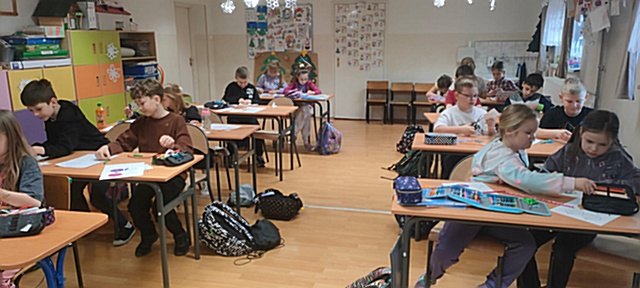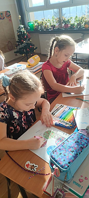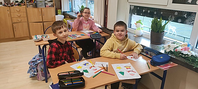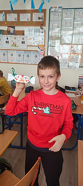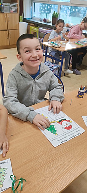 Na lekcjach języka angielskiego w klasach I-III zapanował świąteczny klimat. Uczniowie poznali słownictwo oraz zwyczaje i tradycje bożonarodzeniowe obchodzone w Wielkiej Brytanii. W klasie trzeciej dopełnieniem lekcji było tworzenie tradycyjnych Christmas crackers, natomiast dzieci z klas drugich oraz z klasy pierwszej wykonały świąteczne mini-słowniczki obrazkowe. W trakcie zajęć wszystkim towarzyszył radosny, świąteczny nastrój oraz dobry humor.