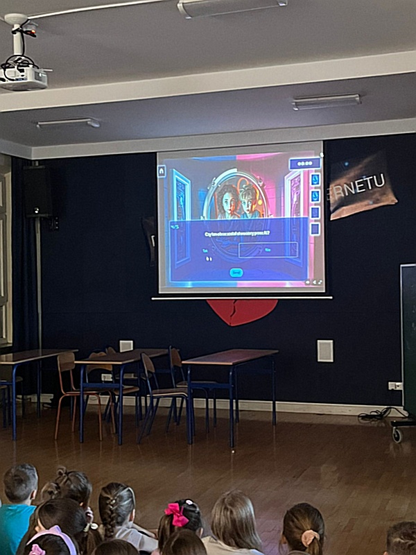 Zwieńczeniem obchodów było zaproszenie całej społeczności szkolnej do interaktywnej zabawy. Uczniowie mogli sprawdzić swoją wiedzę w praktyce, biorąc udział w Edu Escape Roomie, udostępnionym przez zewnętrznych autorów na platformie Genially. Ta nowoczesna forma gry wymagała od uczestników stosowania zasad bezpiecznego surfowania, aby odblokować kolejne poziomy. Wspólna zabawa połączona z odpowiadaniem na pytania dotyczące cyberbezpieczeństwa pokazała, że nauka o trudnych tematach może być pasjonująca i angażująca.