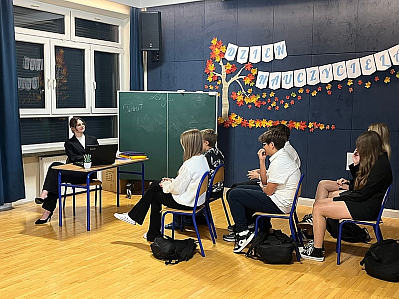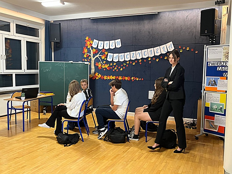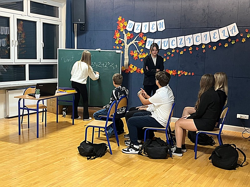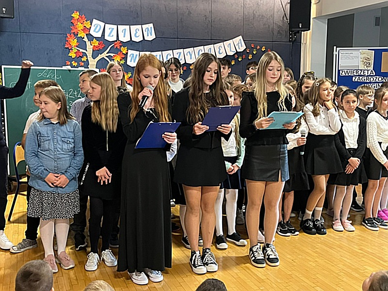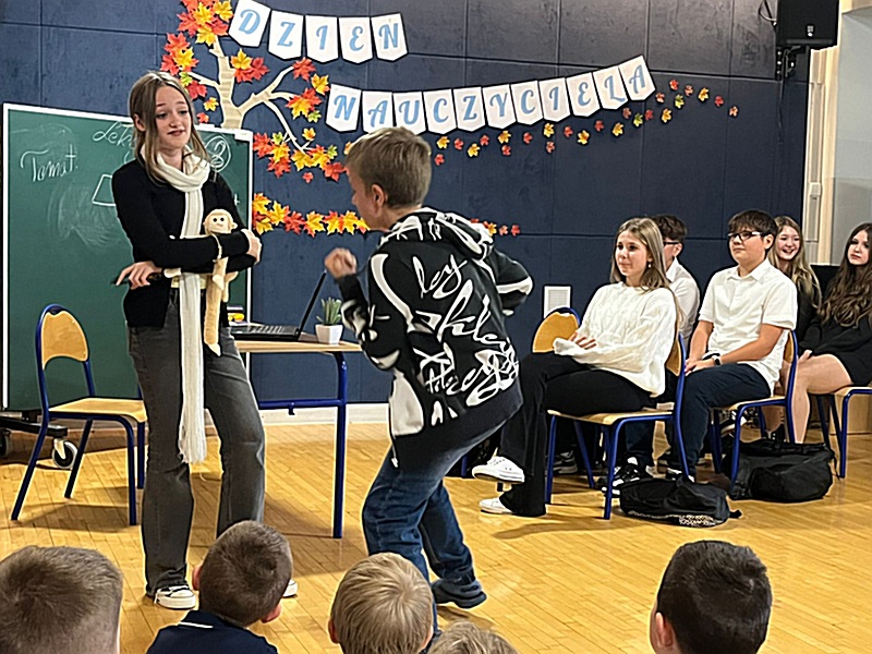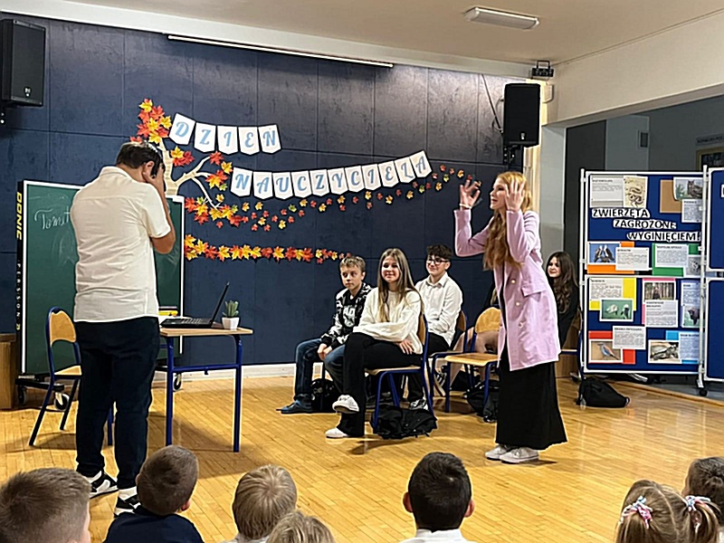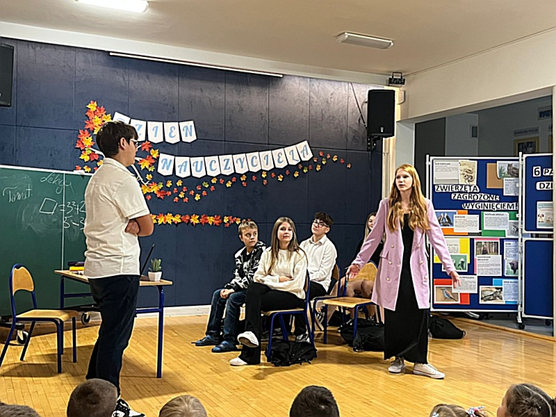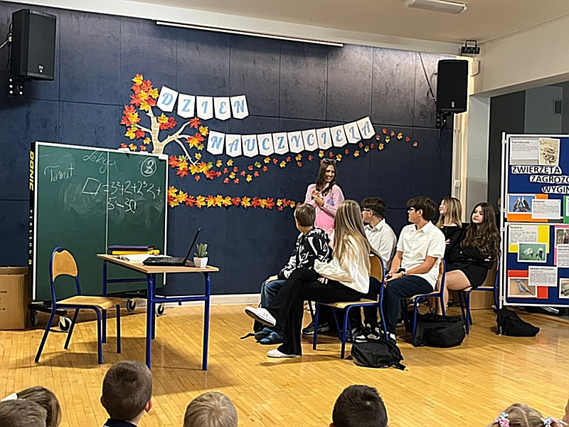 Dnia 13 października odbył się uroczysty apel z okazji dnia nauczyciela.🧑🏫 Przedstawiono krótką prezentację na temat Dnia Edukacji Narodowej.📖 Uczniowie klasy 8 zorganizowali zabawne i twórcze przedstawienie pt. „Dzień z życia ucznia". Następnie wręczyliśmy nauczycielom drobne upominki. Wszyscy byli zachwyceni.💐