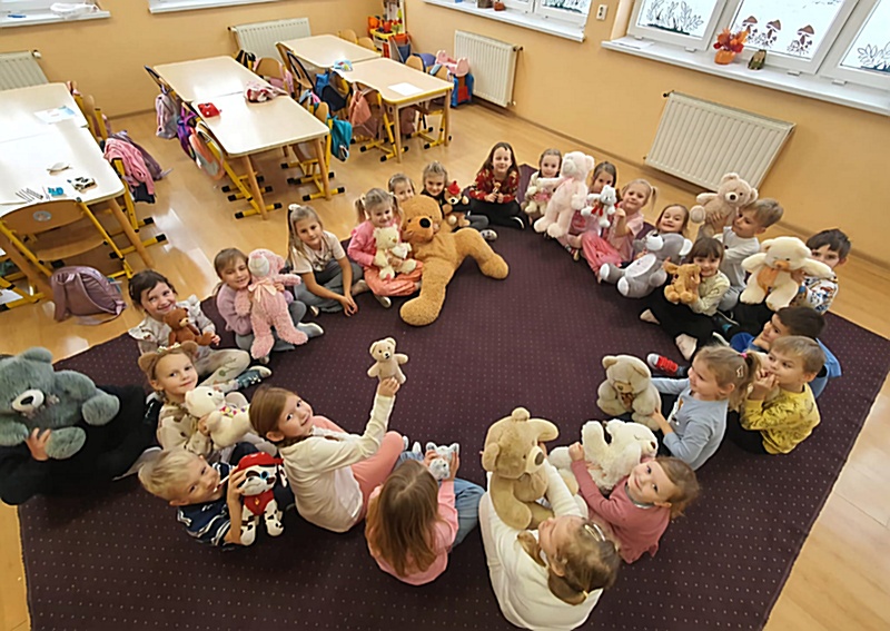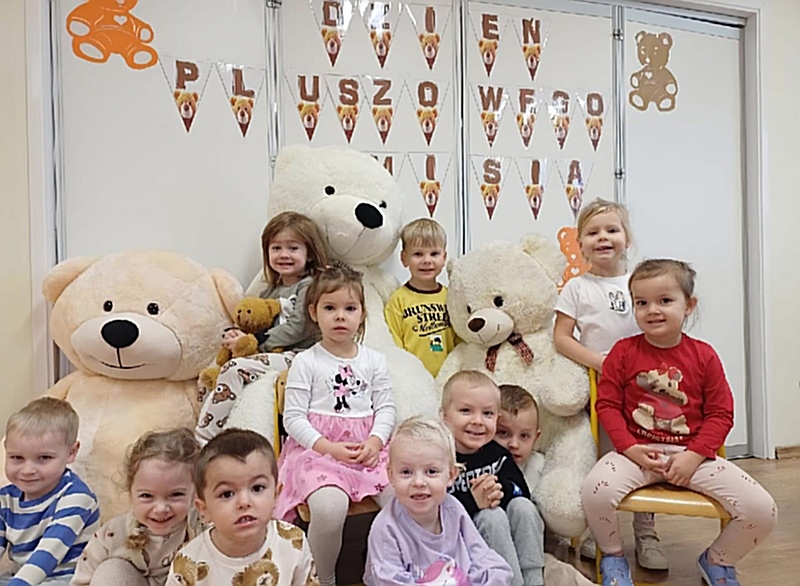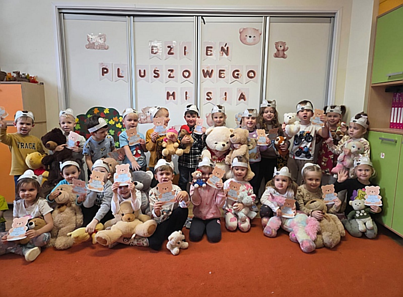 W dniu 25 listopada oddziały przedszkolne obchodziły „Dzień Pluszowego Misia”. Każde dziecko przyszło do przedszkola ze swoim milutkim przyjacielem. Z tej okazji na najmłodszych czekało mnóstwo atrakcji. Dzieci zostały zaproszone do wspólnych zabaw ze swoimi misiami, wysłuchały krótkiej historii na temat tego święta, a następnie bawiły się przy znanych „misiowych” przebojach. Nie zabrakło też twórczych aktywności — dzieci wykonały ciekawe prace plastyczne, w których pojawiły się kolorowe misie, słioiczki sensoryczne oraz misiowe portreciki. Każda praca była inna, pełna pomysłów i dziecięcej wyobraźni. Ten wyjątkowy dzień przyniósł wszystkim wiele radości, a wspomnienia z tego dnia zostaną z nami na długo.