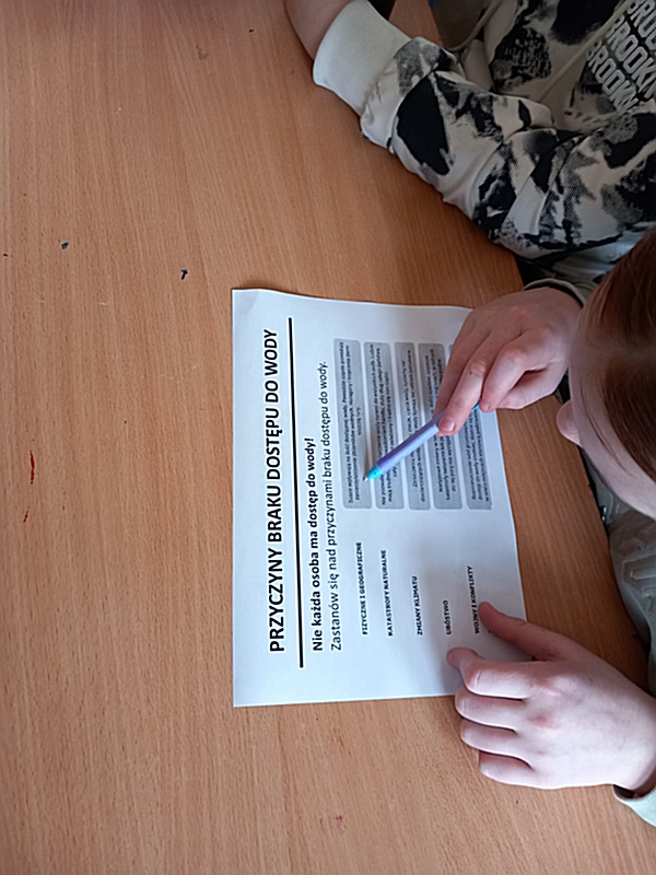 Dzisiaj uczniowie klas 5-8 świętowali Światowy Dzień Wody uczestnicząc w programie Polskiej Akcji Humanitarnej. W ramach programu przeprowadzono zajęcia edukacyjne uświadamiające, że dostęp do czystej wody to prawo człowieka, a jej zasoby są ograniczone. Przygotowano również gazetkę tematyczną zwracającą uwagę na problem wirtualnej wody i jej deficytu w różnych zakątkach świata.