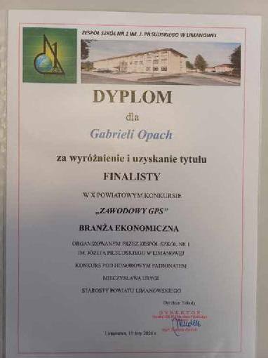 Serdecznie gratulujemy uczennicom klasy VIII: Oliwii Turakiewicz i Gabrieli Opach uzyskania tytułu finalisty w X jubileuszowej edycji, powiatowego konkursu ,,Zawodowy GPS”. Konkurs organizowany jest przez Zespół Szkół nr 1 w Limanowej i ma na celu: wyłanianie, wspieranie i motywowanie uczniów zdolnych w rozwijaniu i poszerzaniu zainteresowań zawodowych, przygotowanie uczniów do świadomego wyboru szkoły ponadpodstawowej, uświadomienie uczniom ich predyspozycji zawodowych, kształtowanie postaw zawodowych uczniów.