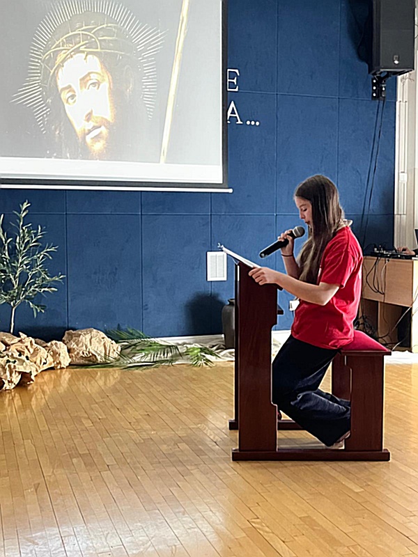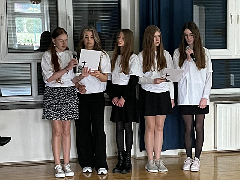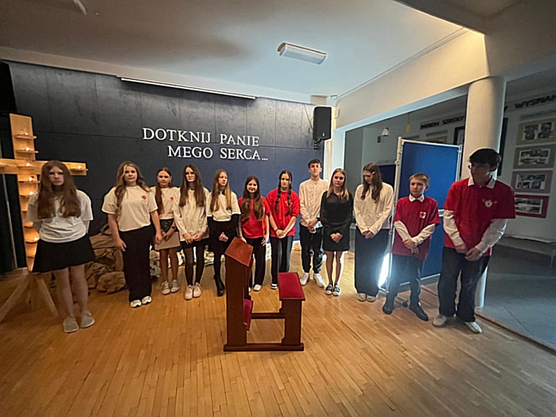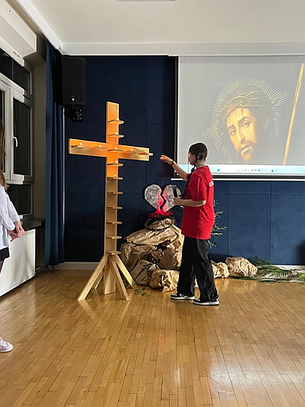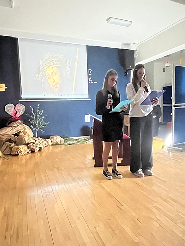 Dzisiaj odbyła się uroczysta akademia z okazji Świąt Wielkanocnych pt „Dotknij Panie mego serca…”, przygotowana przez Szkolne Koło Caritas. Podczas wydarzenia przedstawiono refleksyjne rozważania, które skłaniały do zadumy i głębszej refleksji nad istotą tych wyjątkowych dni. Apel, przeplatany pieśniami wielkopostnymi, wprowadził uczestników w nastrój skupienia, by na zakończenie wybrzmieć radosnym śpiewem pieśni „Zmartwychwstał Pan”, niosącym wielkanocną radość.
