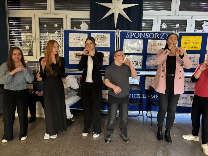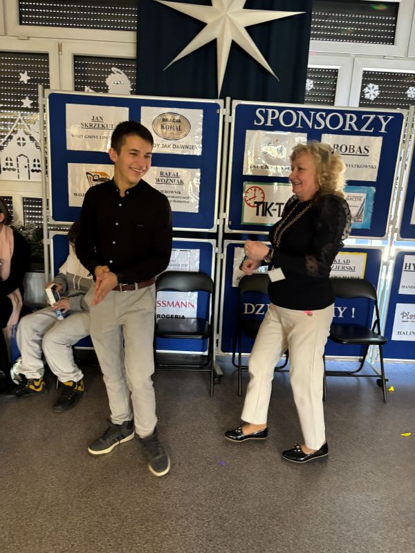 Serdeczne podziękowania kierujemy również do uczniów, którzy z entuzjazmem i zaangażowaniem włączyli się w przygotowanie wydarzenia: Julia Jędrzejek, Lena Kułach, Natalia Nowak, Wojciech Bogacz, Sergiusz Bubula, Joanna Kurek, Julia Czop, Monika Rojek, Karolina Mucha, Sebastian Atłas, Igor Nowak, Wojciech Smoter, Maksymilian Mróz. Wasza pomoc, energia i współpraca sprawiają, że nasza szkoła jest miejscem pełnym życzliwości i wzajemnego wsparcia. Dziękujemy także pracownikom obsługi szkoły za ich nieocenioną pomoc i codzienne zaangażowanie, które przyczyniają się do sprawnego funkcjonowania placówki. Wasza praca jest niezwykle ważna i bardzo ją doceniamy. Razem tworzymy przyjazne, bezpieczne i inspirujące miejsce do nauki oraz rozwoju. Dziękujemy za Waszą obecność i wkład!
