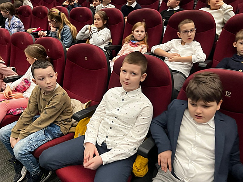 27.marca 2026r. w Międzynarodowym Dniu Teatru uczniowie klas 1-3 wzięli udział w wyjątkowym wydarzeniu kulturalnym. Pod opieką wychowawców udali się na spektakl teatralno-profilaktyczny pt. „Dziadek do orzechów – Dwa królestwa” w wykonaniu Teatru Muzycznego Forte. To widowiskowe przedstawienie połączyło klasyczną baśń z nowoczesną formą musicalu. Uczniowie podziwiali barwne kostiumy i dynamiczny taniec, śledząc losy Klary i jej dzielnego towarzysza. Spektakl pełnił również rolę profilaktyczną – uczył najmłodszych wiary we własne siły oraz wartości płynących z przyjaźni. Wizyta w teatrze była dla dzieci nie tylko lekcją wrażliwości estetycznej, ale także doskonałą okazją do wspólnej integracji poza murami szkoły. Niespodzianką było spotkanie z artystami po przedstawieniu, trzecioklasiści przekazali życzenia z okazji Święta Teatru oraz bukiet kwiatów na ręce odtwórczni głównej roli - Klary. Potem było wspólne zdjęcie na pamiątkę spotkania. Ten dzień na długo pozostanie w pamięci.