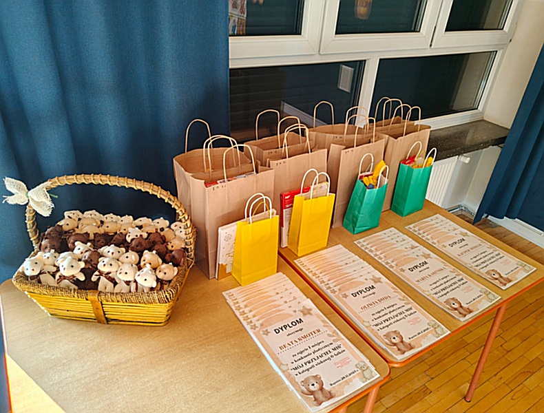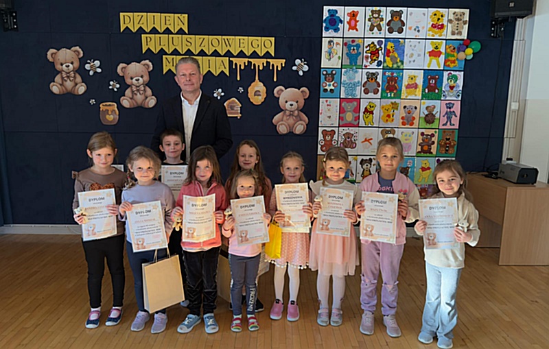 28 listopada odbyło się uroczyste podsumowanie konkursu plastycznego "Mój przyjaciel miś". Podczas spotkania ogłoszono wyniki oraz wręczono nagrody autorom najciekawszych prac. Rozdania nagród dokonał dyrektor szkoły Robert Piwowarczyk, gratulując dzieciom z oddziałów przedszkolnych kreatywności i zaangażowania.