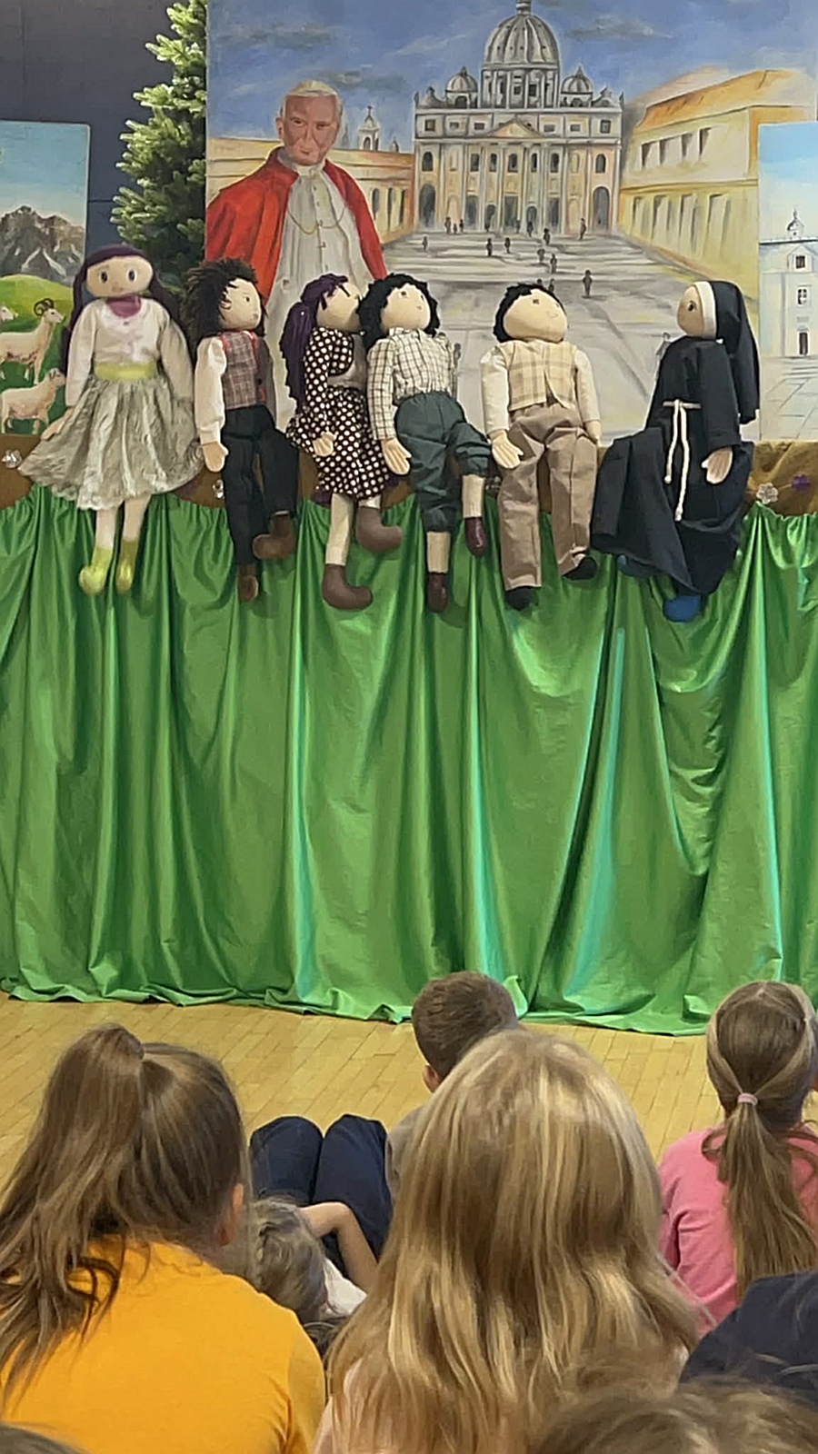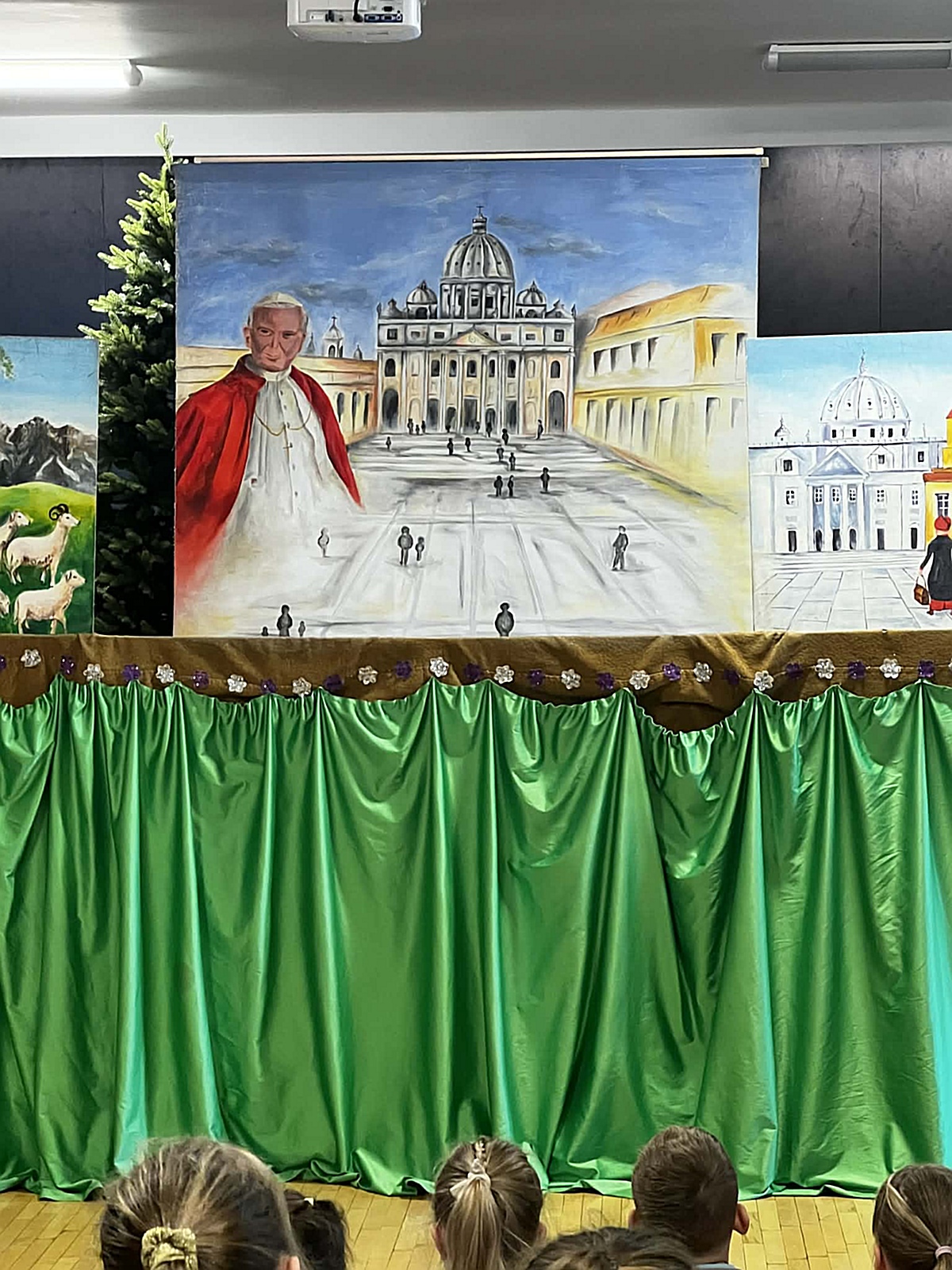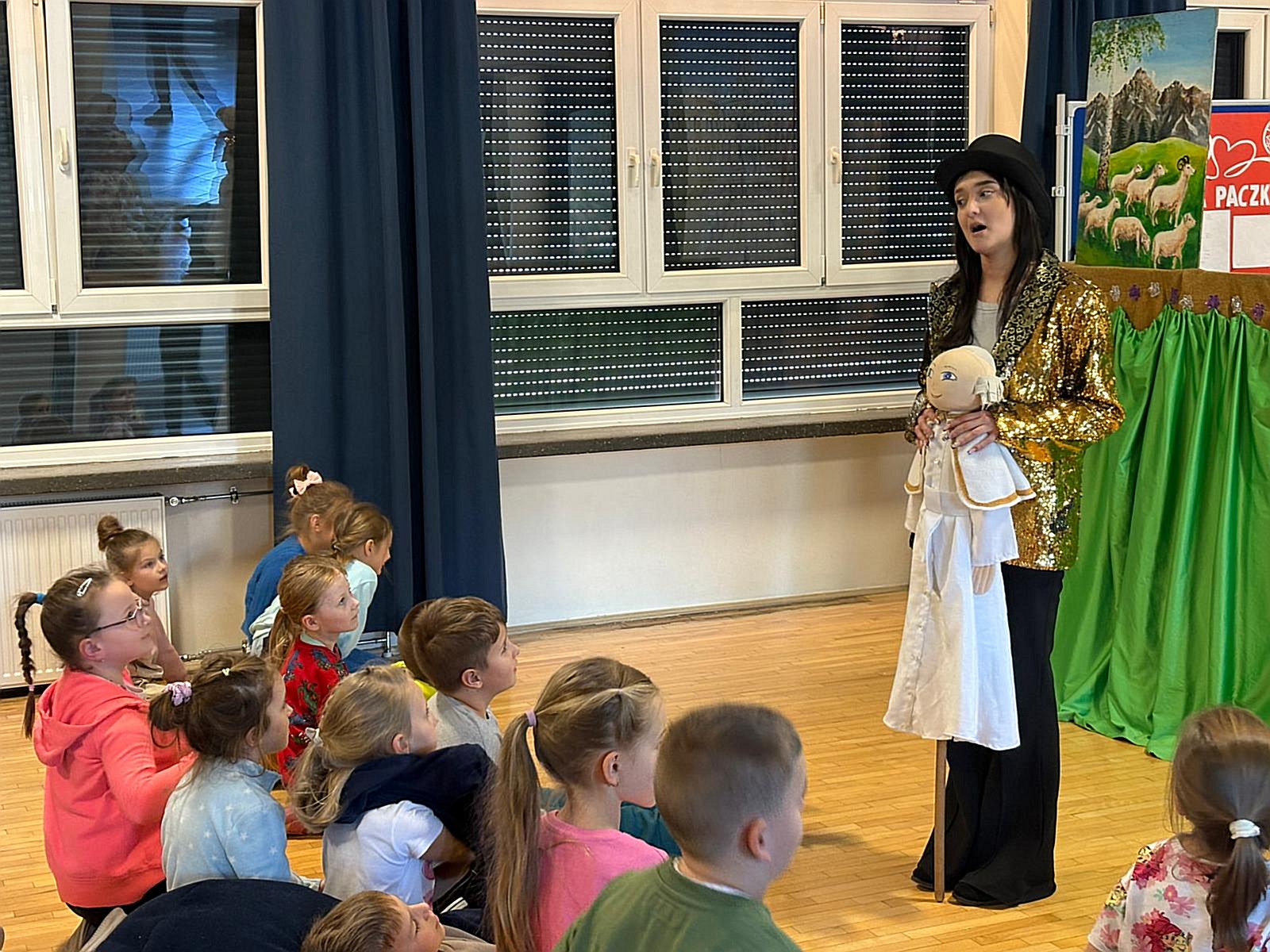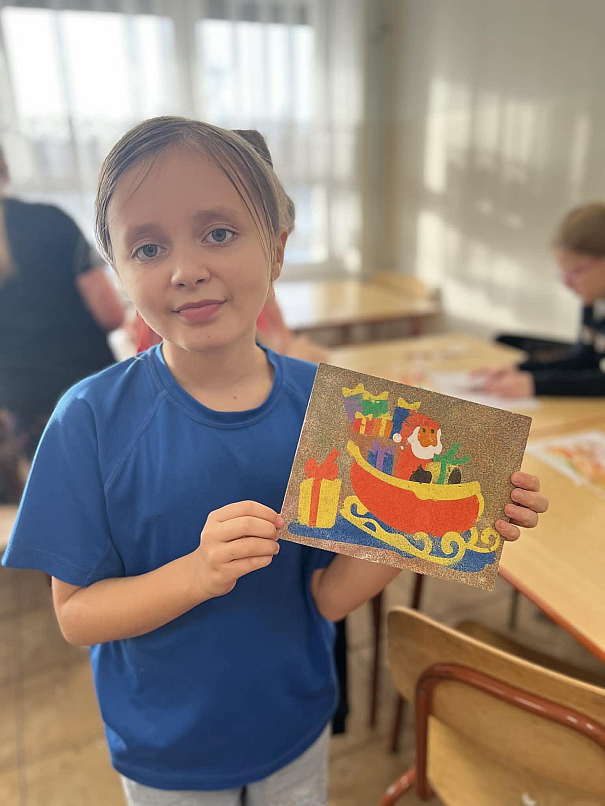 We wtorek, 02.12.2025 roku, uczniowie klas I-III wraz z wychowawcami wzięli udział w warsztatach plastycznych “Malowanie piaskiem”. Dzieci pod okiem instruktorki nauczyły się nowej dla nich techniki plastycznej polegającej na wypełnianiu konturów obrazka kolorowymi piaskami. Praca przyniosła uczniom wiele satysfakcji a jej efekty były bardzo zadowalające. Powstały piękne obrazki o tematyce świątecznej. Kolejnym punktem dnia był udział tej samej grupy w przedstawieniu teatrzyku kukiełkowego. Uczniowie mieli okazję zobaczyć spektakl oparty o książkę Joanny Krzyżanek “Jak Karolek został Papieżem”. Dzieci z wielką uwagą śledziły losy Karola od czasów jego dzieciństwa w Wadowicach, poprzez lata młodości i dojrzałości, aż do wyboru Polaka na najwyższy urząd w Stolicy Apostolskiej. Przedstawienie podobało się dzieciom i przybliżyło im postać późniejszego papieża.
