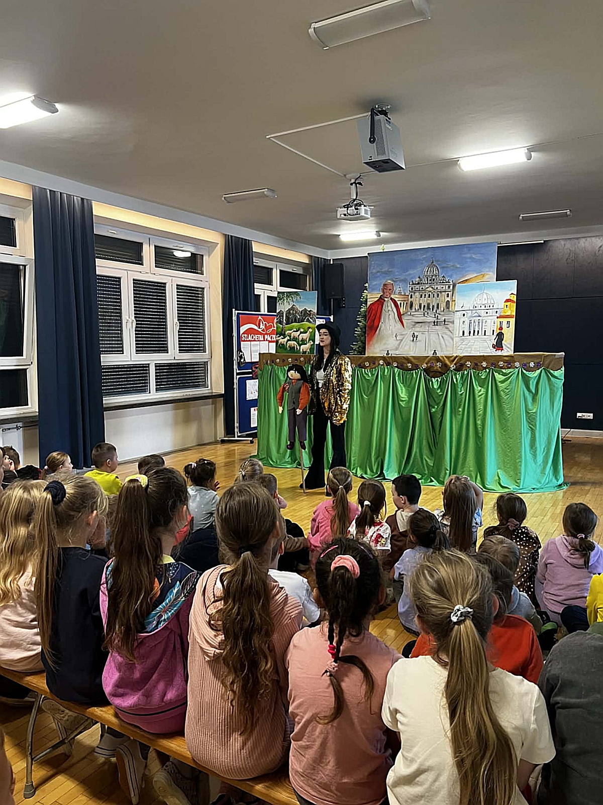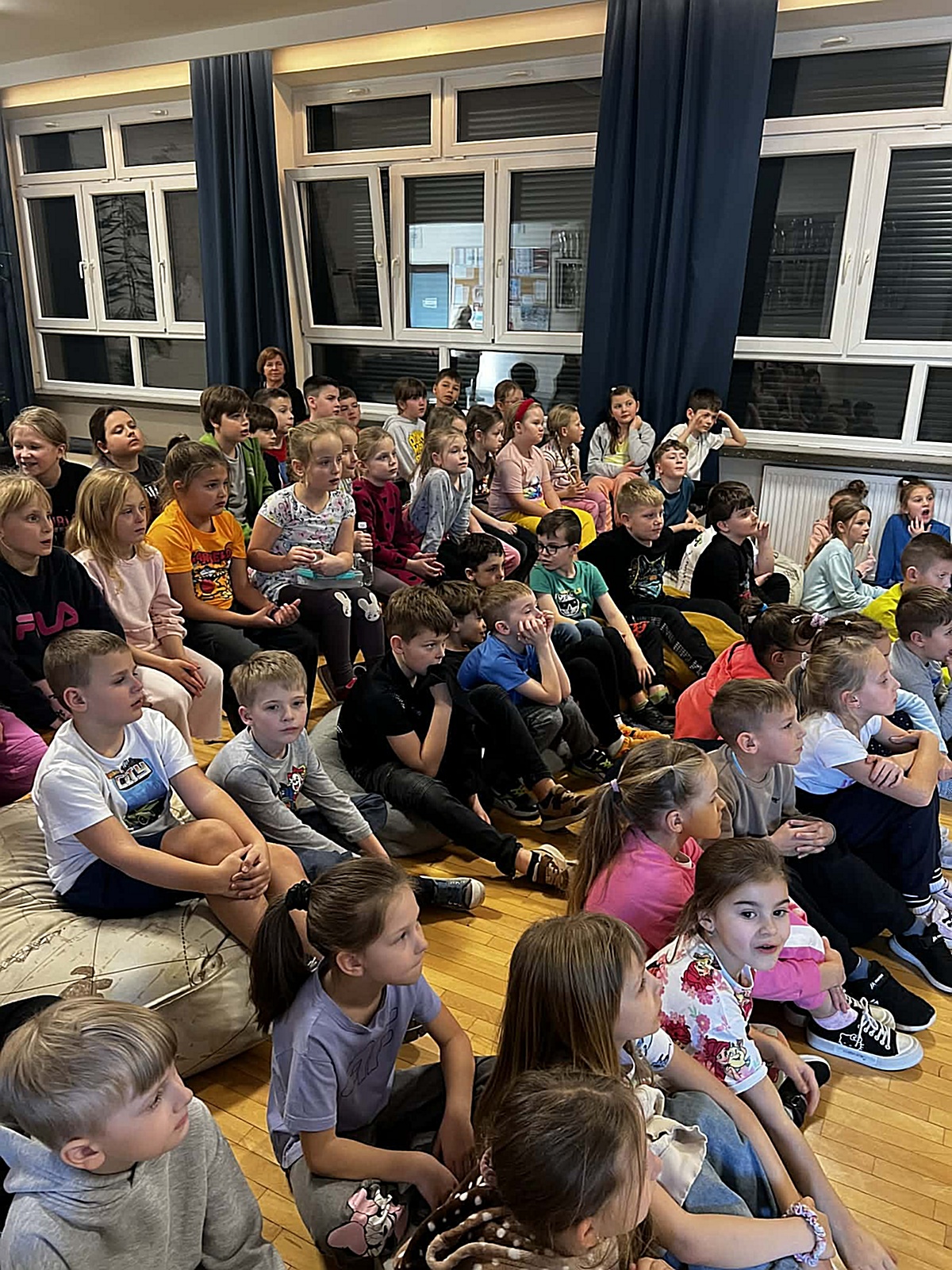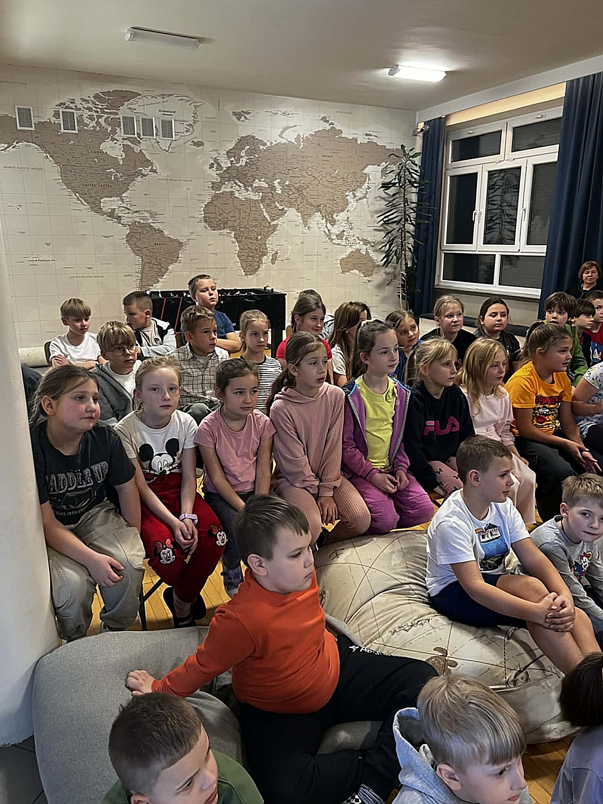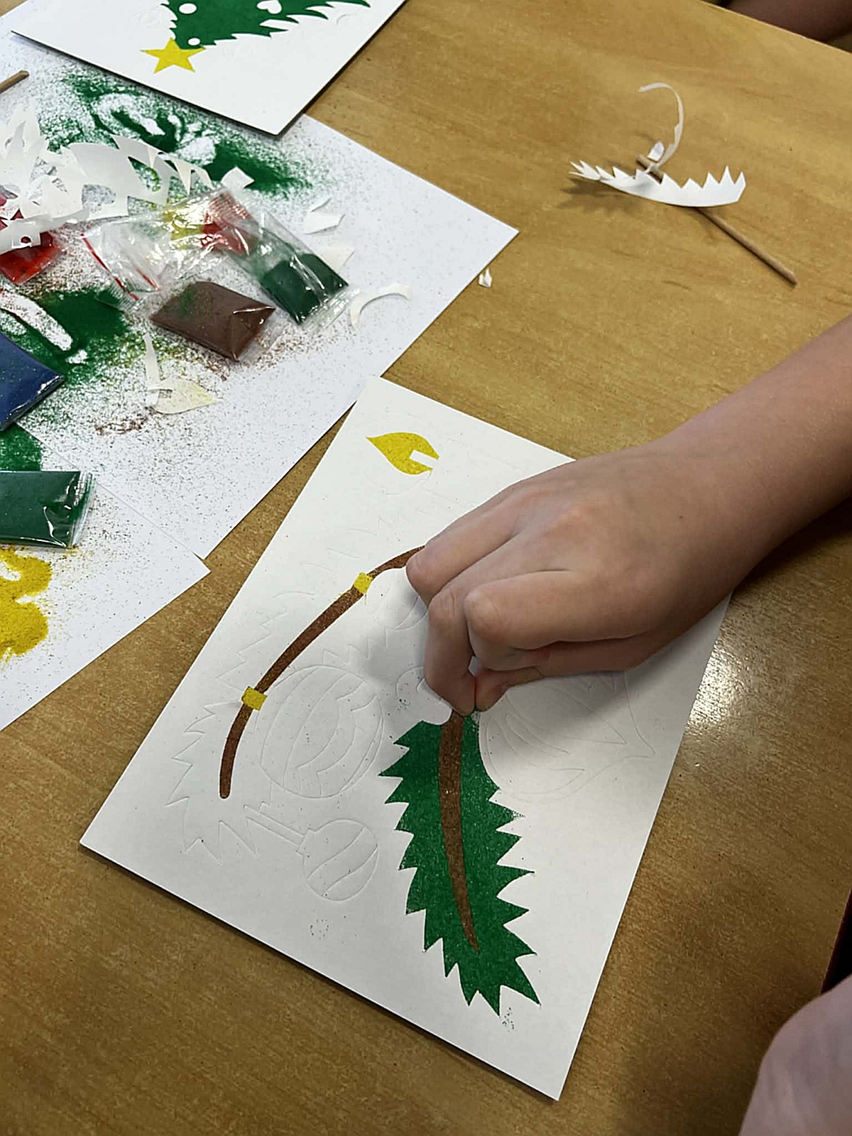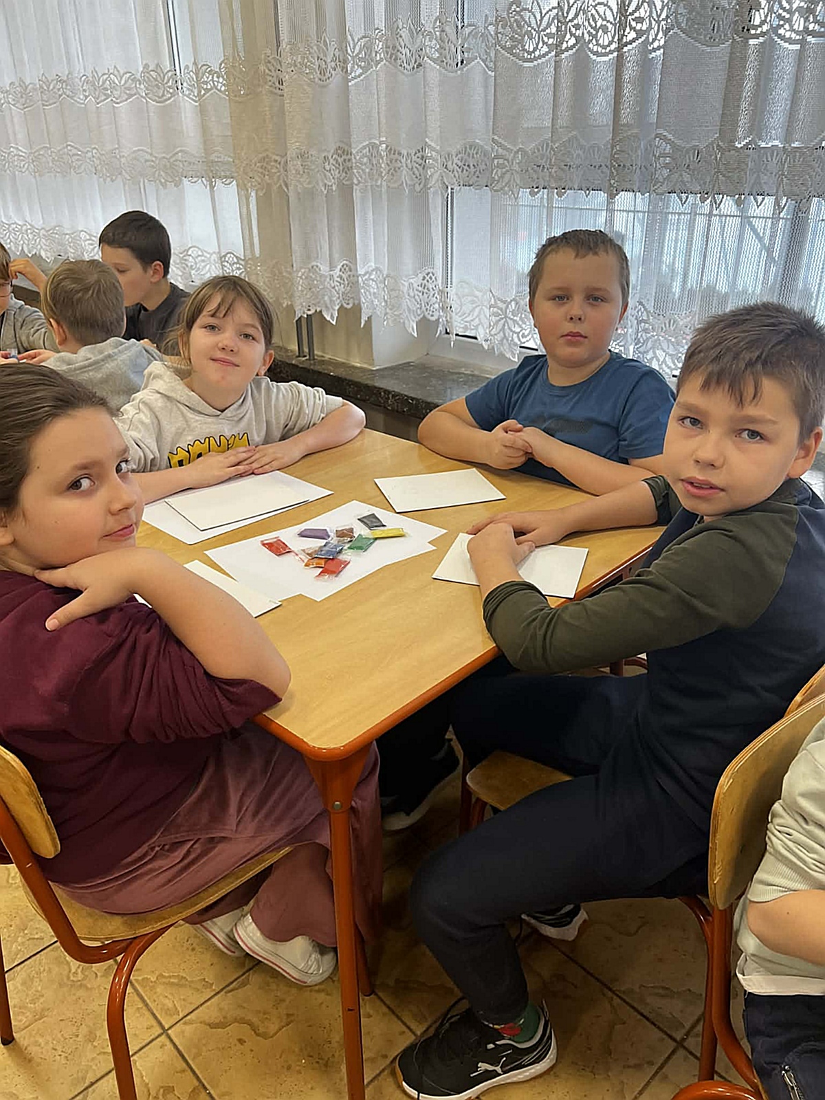 We wtorek, 02.12.2025 roku, uczniowie klas I-III wraz z wychowawcami wzięli udział w warsztatach plastycznych “Malowanie piaskiem”. Dzieci pod okiem instruktorki nauczyły się nowej dla nich techniki plastycznej polegającej na wypełnianiu konturów obrazka kolorowymi piaskami. Praca przyniosła uczniom wiele satysfakcji a jej efekty były bardzo zadowalające. Powstały piękne obrazki o tematyce świątecznej. Kolejnym punktem dnia był udział tej samej grupy w przedstawieniu teatrzyku kukiełkowego. Uczniowie mieli okazję zobaczyć spektakl oparty o książkę Joanny Krzyżanek “Jak Karolek został Papieżem”. Dzieci z wielką uwagą śledziły losy Karola od czasów jego dzieciństwa w Wadowicach, poprzez lata młodości i dojrzałości, aż do wyboru Polaka na najwyższy urząd w Stolicy Apostolskiej. Przedstawienie podobało się dzieciom i przybliżyło im postać późniejszego papieża.