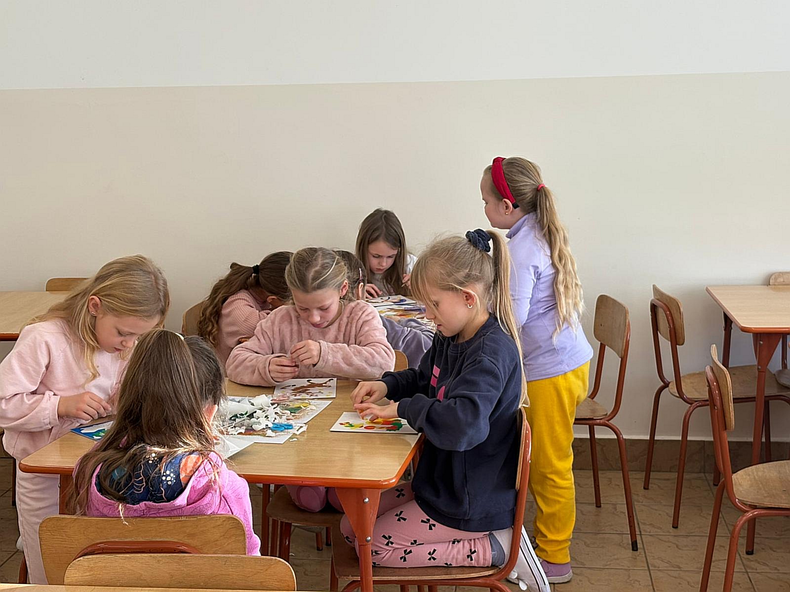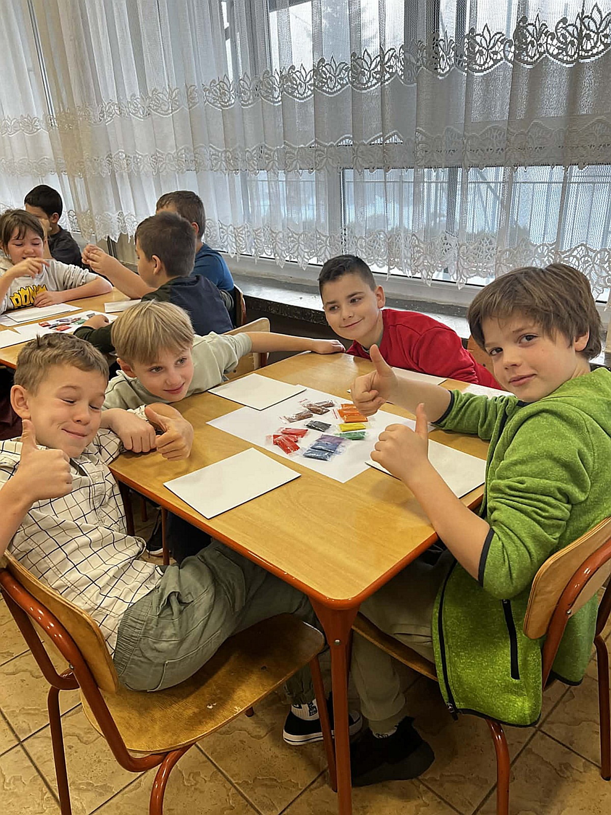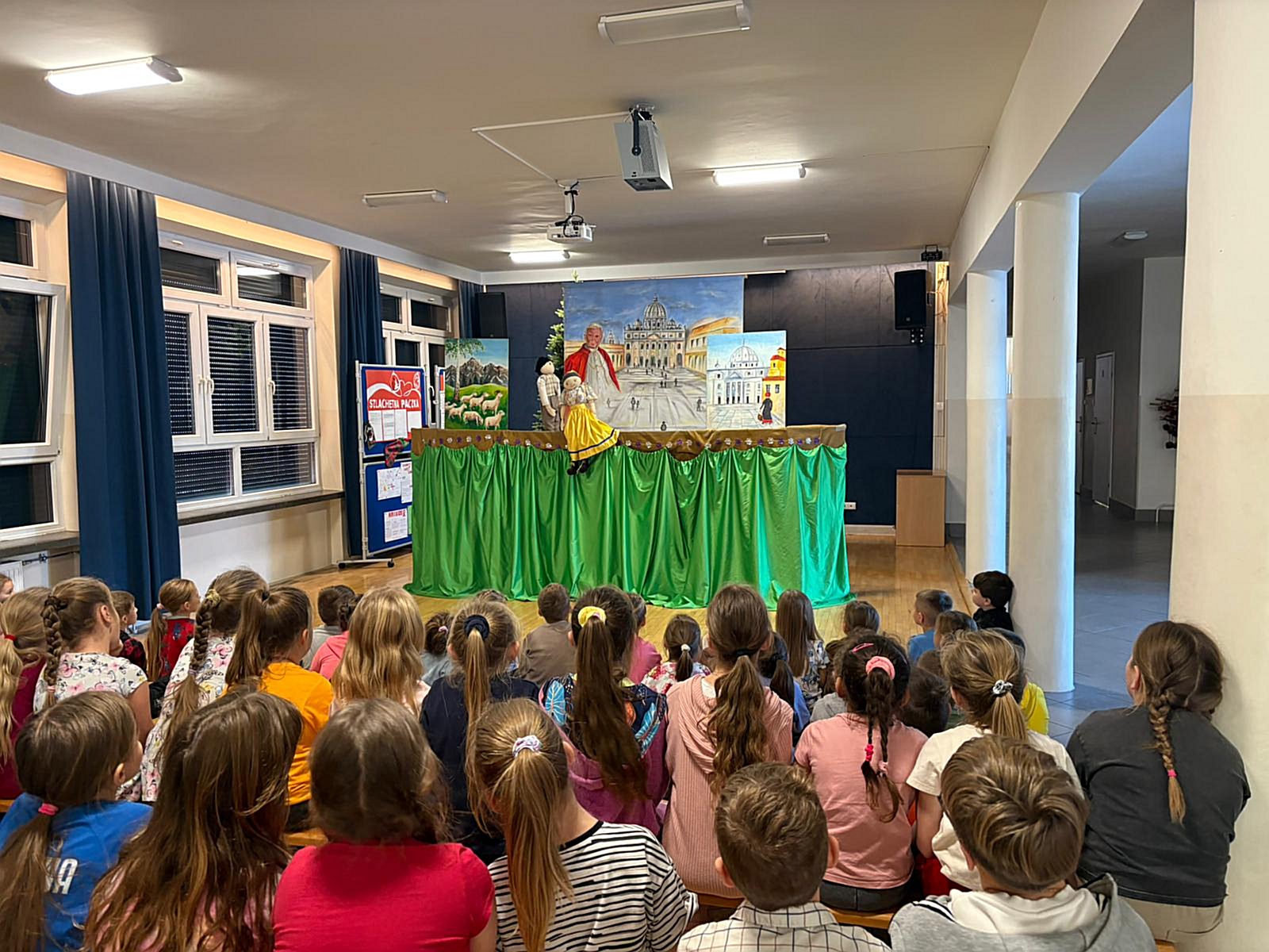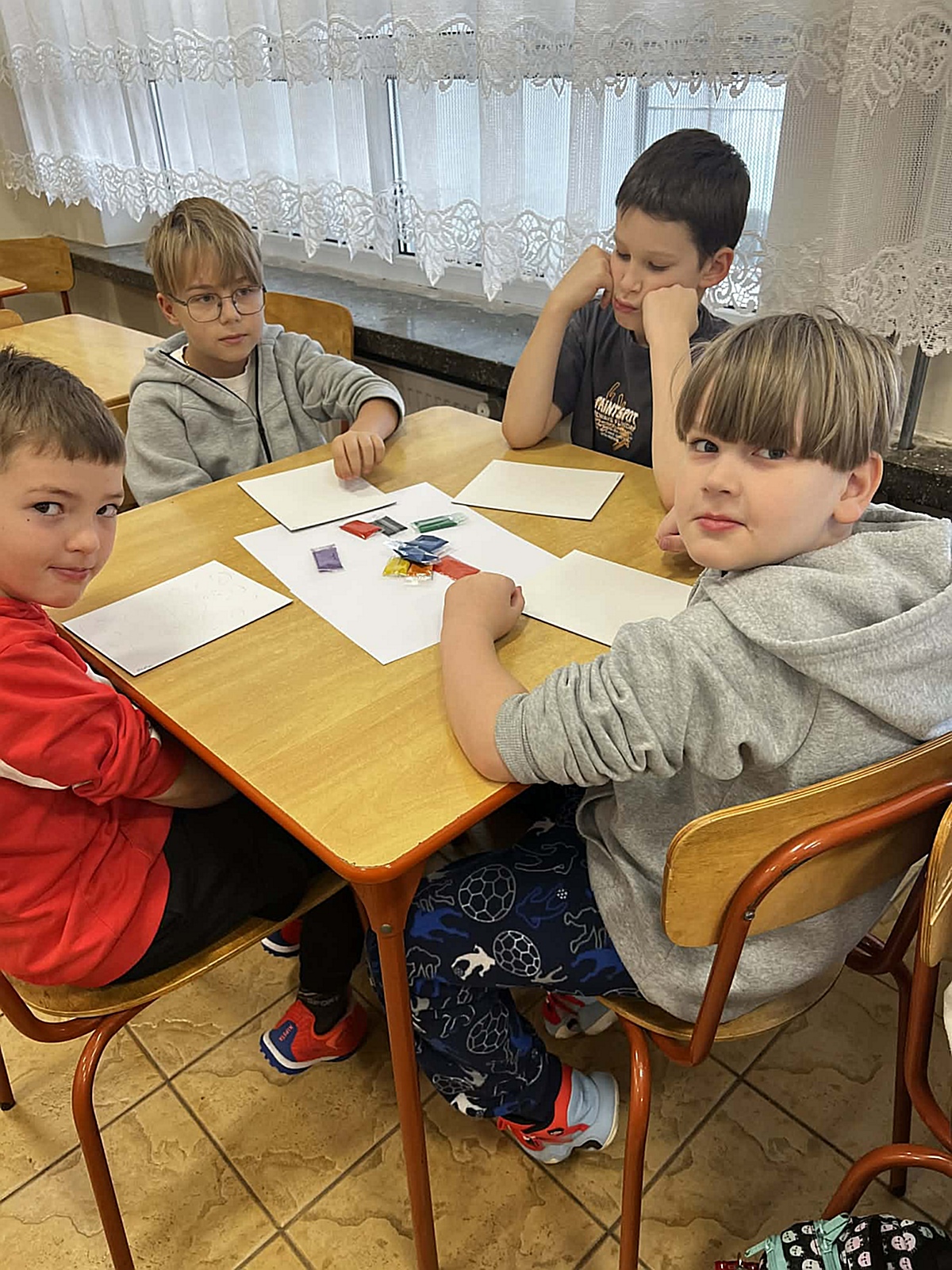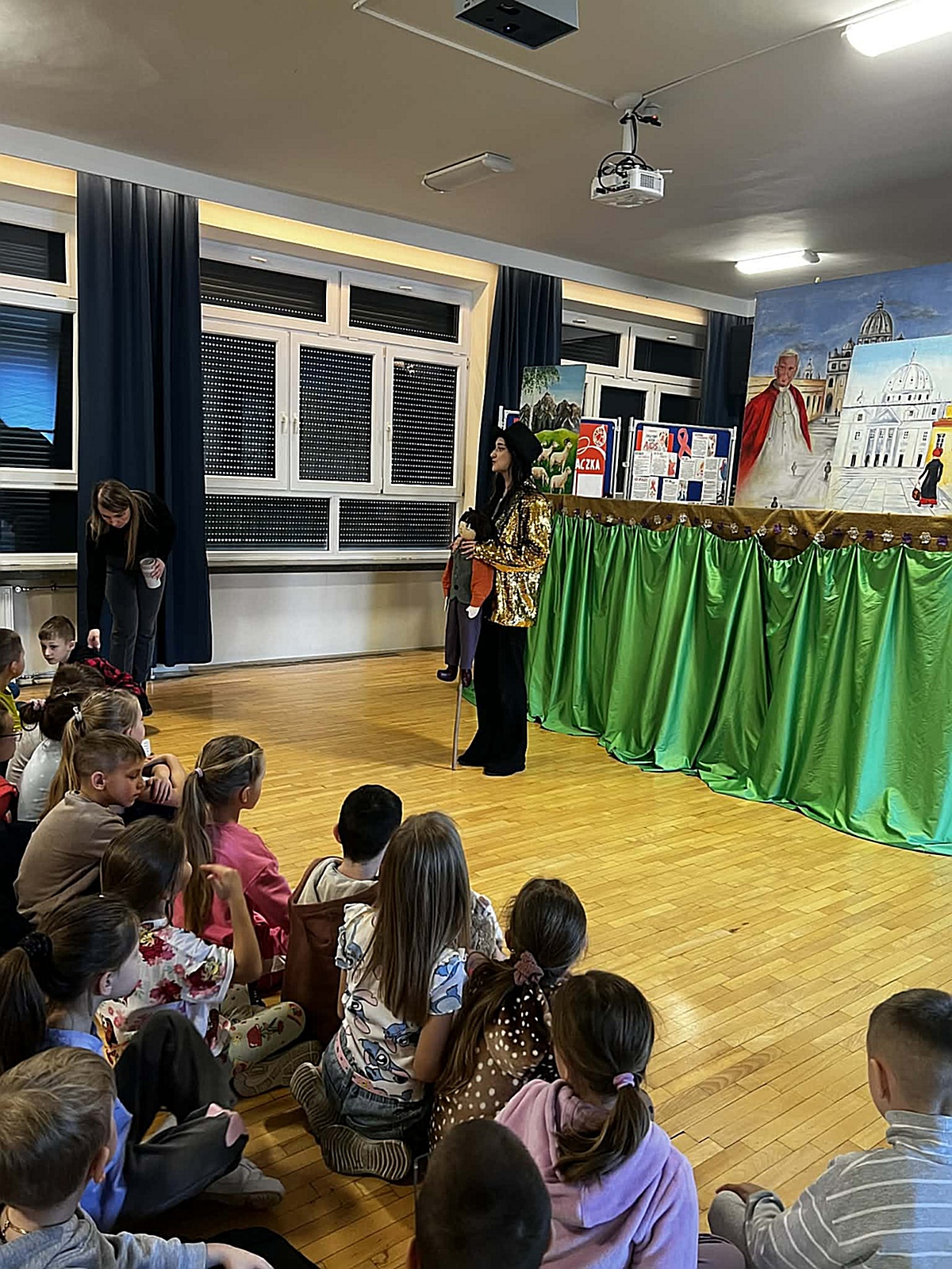 We wtorek, 02.12.2025 roku, uczniowie klas I-III wraz z wychowawcami wzięli udział w warsztatach plastycznych “Malowanie piaskiem”. Dzieci pod okiem instruktorki nauczyły się nowej dla nich techniki plastycznej polegającej na wypełnianiu konturów obrazka kolorowymi piaskami. Praca przyniosła uczniom wiele satysfakcji a jej efekty były bardzo zadowalające. Powstały piękne obrazki o tematyce świątecznej. Kolejnym punktem dnia był udział tej samej grupy w przedstawieniu teatrzyku kukiełkowego. Uczniowie mieli okazję zobaczyć spektakl oparty o książkę Joanny Krzyżanek “Jak Karolek został Papieżem”. Dzieci z wielką uwagą śledziły losy Karola od czasów jego dzieciństwa w Wadowicach, poprzez lata młodości i dojrzałości, aż do wyboru Polaka na najwyższy urząd w Stolicy Apostolskiej. Przedstawienie podobało się dzieciom i przybliżyło im postać późniejszego papieża.