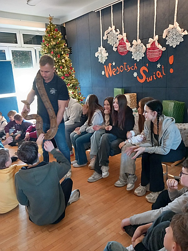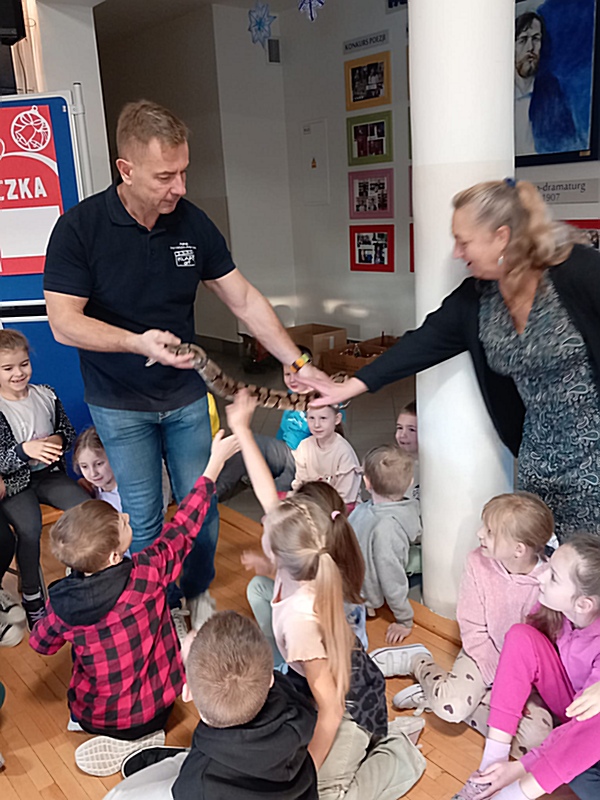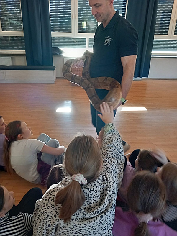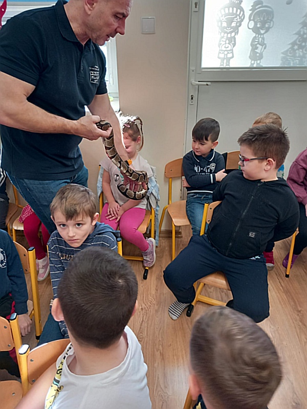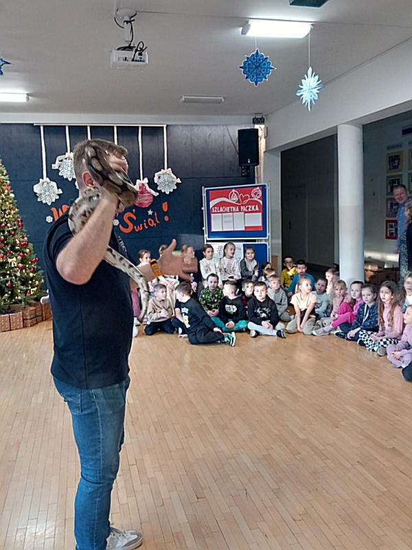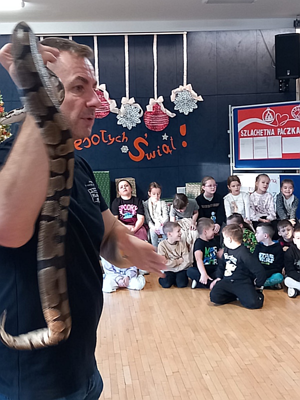 W dniu dzisiejszym cała społeczność szkolna uczestniczyła w zajęciach edukacyjnych z żywymi zwierzętami – gadami. Dzieci z oddziałów przedszkolnych oraz uczniowie klas 1-8 mieli okazję na przykładzie prawdziwych zwierząt – węży uczyć się o ich biologii, zachowaniu i roli w ekosystemie. Taka lekcja to wyjątkowe doświadczenie, które pozwoliło uczniom nie tylko zobaczyć z bliska, ale też dotknąć te niezwykłe zwierzęta, zamiast tylko o nich czytać w podręcznikach.