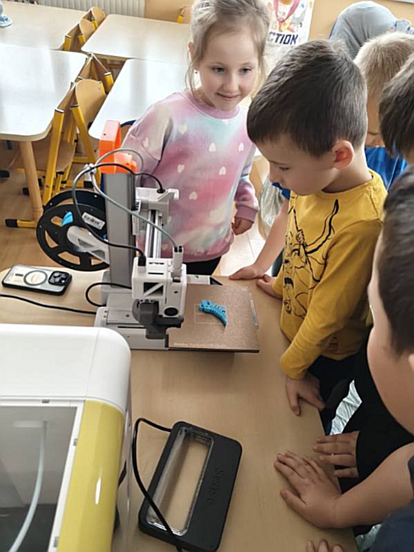 W piątek dzieci z oddziałów przedszkolnych 0C i 0D brały udział w wyjątkowych warsztatach 3D. Podczas zajęć miały okazję poznać nowoczesną technologię druku przestrzennego oraz zobaczyć, jak krok po kroku powstają trójwymiarowe modele. Największe zainteresowanie wzbudziła praca drukarki 3D – dzieci z zaciekawieniem obserwowały proces tworzenia oraz dowiedziały się, do czego można wykorzystać taką technologię w codziennym życiu. Nie zabrakło także elementów zabawy i nauki przez działanie, które pozwoliły uczestnikom lepiej zrozumieć omawiane zagadnienia. Było to niezwykle ciekawe i inspirujące spotkanie, które dostarczyło dzieciom wielu pozytywnych emocji oraz nowych doświadczeń.