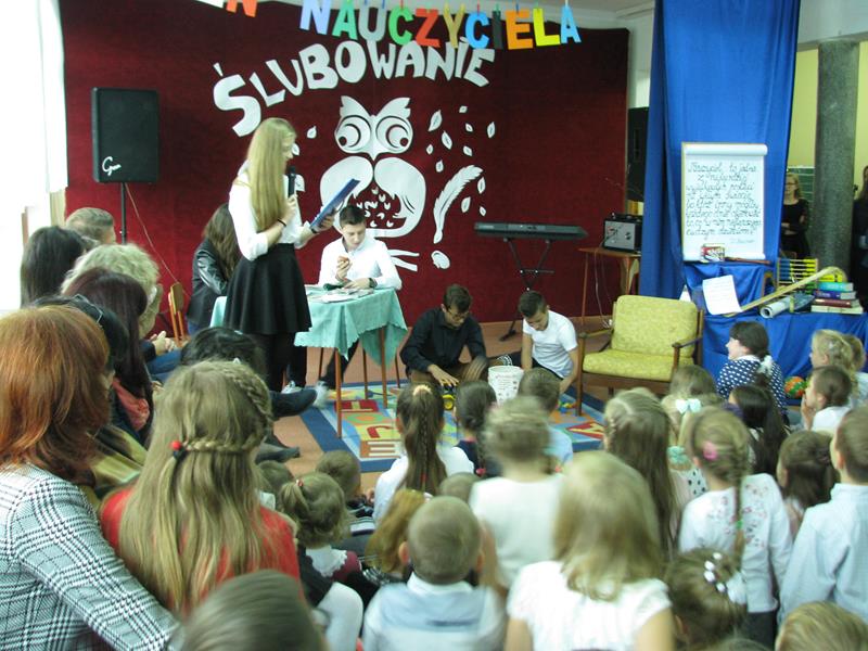 Pani dyrektor mgr Danuta Dębska pasowała naszych pierwszoklasistów. Następnie wysłuchaliśmy przygotowanej przez nich części artystycznej. Po zakończeniu akademii przyszedł czas na otrzęsiny. Na koniec uczniowie złożyli pedagogom życzenia, a przedstawiciele Samorządu Uczniowskiego przedstawili część artystyczną z okazji Dnia Edukacji Narodowej.