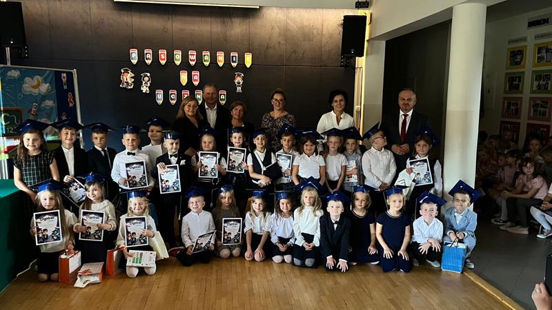 Dnia 17 października 2025r. do grona naszych uczniów oficjalnie zostali przyjęci kolejni pierwszoklasiści. Uczniowie klasy pierwszej przygotowywali się do tej uroczystości od początku roku szkolnego. Dzielnie uczyli się piosenek, wytrwale ćwiczyli recytację. W tym ważnym dniu, od samego rana panowała świąteczna atmosfera. Pierwszacy ubrani w strój galowy, piękna dekoracja sali, przygotowany sprzęt nagłaśniający i nagrywający to wszystko po to, by ślubowanie pierwszaków wypadło jak najbardziej uroczyście. Z pomocą uczniów klasy czwartej dzieci zaprezentowały swoje umiejętności. Po przez recytowanie wierszy, śpiewanie piosenek odgrywanie scenek udowodniły, że są gotowe do sumiennej pracy w szkole. W podniosłej atmosferze, w obecności Wójta Gminy Limanowa Jana Skrzekuta, Dyrektor Gminnego Zespołu Obsługi Szkół Edyty Król, Dyrektora Szkoły Roberta Piwowarczyka i Wicedyrektor Beaty Ryś, rodziców i nauczycieli, przed pocztem sztandarowym pierwszacy ślubowali być dobrymi Polakami, godnie reprezentować szkołę, swym zachowaniem i nauką sprawiać radość rodzicom i nauczycielom. Po złożeniu ślubowania pan dyrektor Robert Piwowarczyk dokonał symbolicznego pasowania, dotykając ołówkiem ramion swoich podopiecznych, wręczając im pamiątkowe dyplomy i legitymacje szkolne.