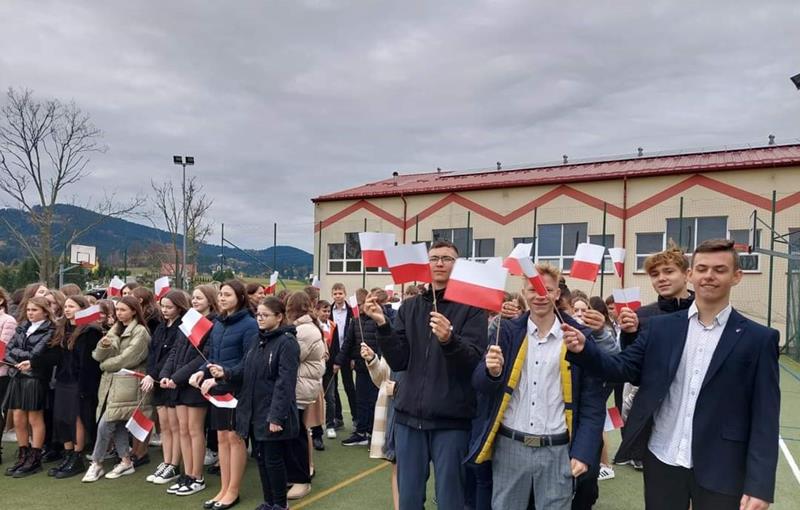 W piątek 10 listopada 2023 roku w naszej szkole odbyło się patriotyczne świętowanie. Rano uczniowie wraz z dyrekcją, wychowawcami, nauczycielami i pracownikami szkoły udali się na Mszę Świętą w intencji Ojczyzny do pobliskiej kaplicy. Dalsza część uroczystości miała miejsce na terenie szkoły. Wciągnięto na odnowiony maszt flagę Polski i odśpiewano hymn państwowy. Potem odbyła się akademia, która przypominała, czym powinna być dla każdego i każdej z nas Ojczyzna.