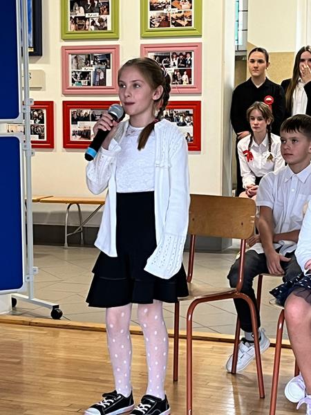 Na koniec wszyscy uczniowie naszej szkoły zaśpiewali wybrane pieśni patriotyczne dla Niepokornej, Niezwyciężonej, Wolnej, Kochanej naszej Ojczyzny - Polski.