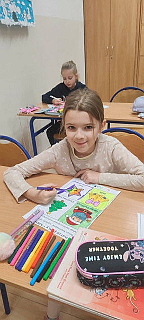 Na lekcjach języka angielskiego w klasach I-III zapanował świąteczny klimat. Uczniowie poznali słownictwo oraz zwyczaje i tradycje bożonarodzeniowe obchodzone w Wielkiej Brytanii. W klasie trzeciej dopełnieniem lekcji było tworzenie tradycyjnych Christmas crackers, natomiast dzieci z klas drugich oraz z klasy pierwszej wykonały świąteczne mini-słowniczki obrazkowe. W trakcie zajęć wszystkim towarzyszył radosny, świąteczny nastrój oraz dobry humor.