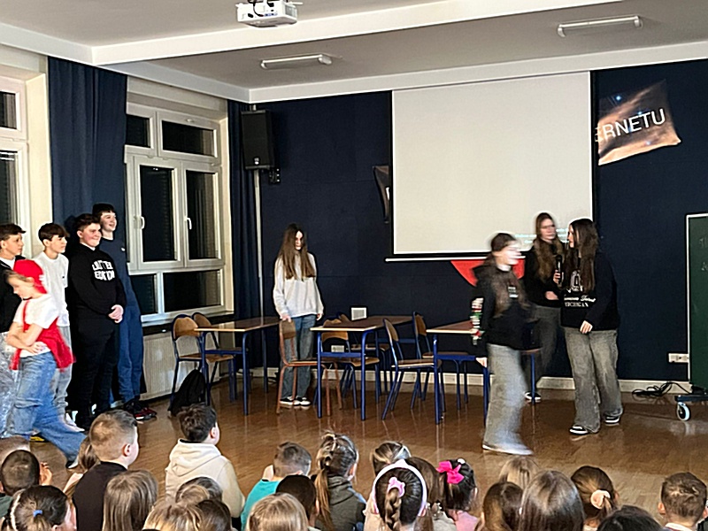 Z okazji Dnia Bezpiecznego Internetu w naszej szkole odbyła się uroczysta akademia, podczas której uczniowie w obrazowy sposób przybliżyli najważniejsze zasady cyberbezpieczeństwa. Program artystyczny składał się z trzech pouczających scenek, przygotowanych przez klasy piątą oraz siódmą.