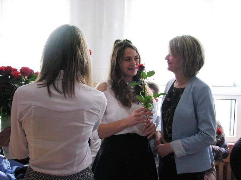 Po występie członkowie Samorządu Uczniowskiego złożyli życzenia, podziękowania za pracę i podarowali wszystkim nauczycielom symboliczne róże.