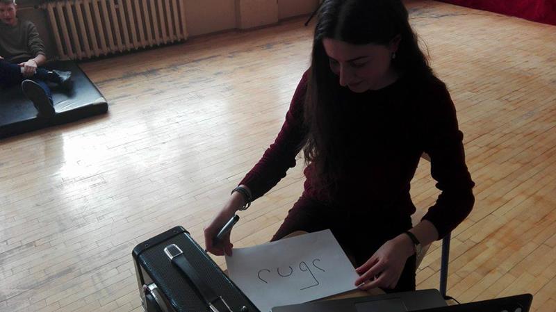 Interesująca prezentacja z mnóstwem zdjęć i ciekawostek pomogła gimnazjalistom lepiej zrozumieć przekaz w języku obcym. Gruzja jest niewielkim państwem, lecz bardzo górzystym. Obliczono, że gdyby „rozprasować” te góry wówczas Gruzja byłaby większa od Stanów Zjednoczonych. Dowiedzieliśmy się też, że Gruzja słynie nie tylko ze swej niepowtarzalnej przyrody i wysokich gór, ale także wina, pięknego tańca oraz unikatowego alfabetu. Salome zapisywała na kartce imiona uczniów, które w gruzińskim alfabecie wyglądały bardzo efektownie. Prawie każdy chciał mieć tak zapisane swoje imię, więc po prezentacji Salome jeszcze przez ponad 10 minut zapisywała kolejne imiona. Następnie nasza wykładowczyni próbowała nauczyć naszych uczniów kilku słów w języku gruzińskim, ale chyba wybrała najtrudniejsze wyrazy, bo powtórzenie ich sprawiło nam nie lada trudność.