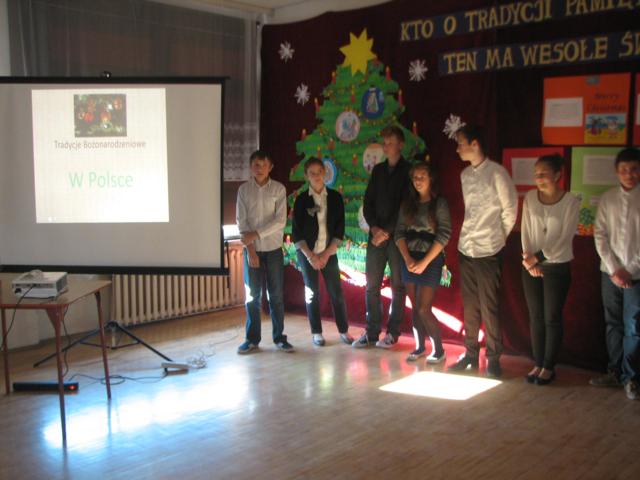 Jak Boże Narodzenie obchodzone jest u nas w Polsce, a jak w innych krajach przedstawili uczniowie realizujący projekty edukacyjne pt.: „Tradycje i zwyczaje bożonarodzeniowe w Polsce” oraz „Tradycje i zwyczaje bożonarodzeniowe na świecie”.