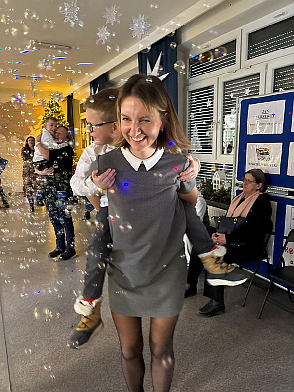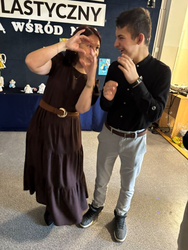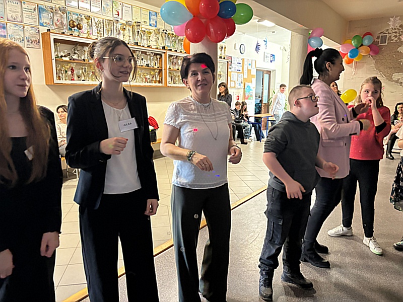 Serdeczne podziękowania kierujemy również do uczniów, którzy z entuzjazmem i zaangażowaniem włączyli się w przygotowanie wydarzenia: Julia Jędrzejek, Lena Kułach, Natalia Nowak, Wojciech Bogacz, Sergiusz Bubula, Joanna Kurek, Julia Czop, Monika Rojek, Karolina Mucha, Sebastian Atłas, Igor Nowak, Wojciech Smoter, Maksymilian Mróz. Wasza pomoc, energia i współpraca sprawiają, że nasza szkoła jest miejscem pełnym życzliwości i wzajemnego wsparcia. Dziękujemy także pracownikom obsługi szkoły za ich nieocenioną pomoc i codzienne zaangażowanie, które przyczyniają się do sprawnego funkcjonowania placówki. Wasza praca jest niezwykle ważna i bardzo ją doceniamy. Razem tworzymy przyjazne, bezpieczne i inspirujące miejsce do nauki oraz rozwoju. Dziękujemy za Waszą obecność i wkład!