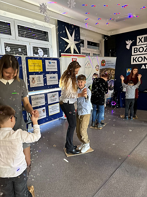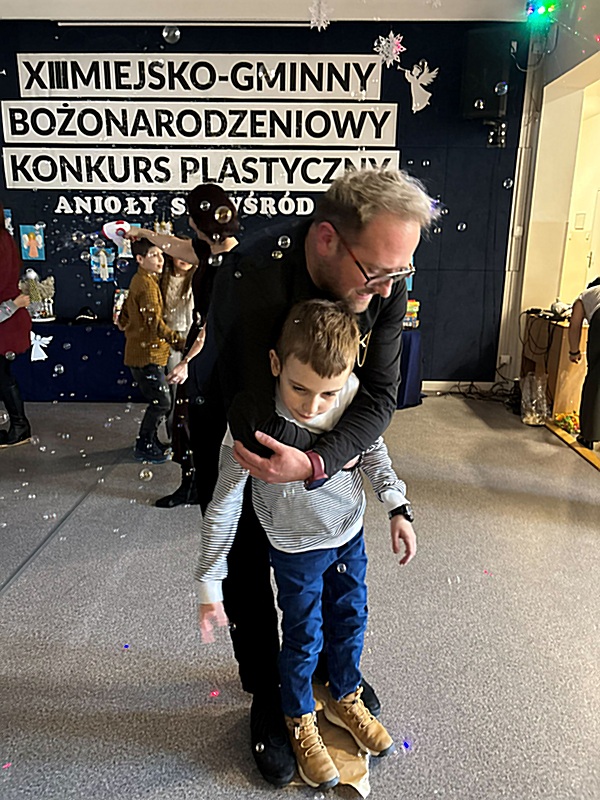 Konkurs plastyczny polegał na wykonaniu pracy przedstawiającej anioła – symbolu dobroci, nadziei, opieki i bezinteresownej pomocy. Uczestnicy wykazali się ogromną kreatywnością i pomysłowością, tworząc prace z różnorodnych materiałów: papieru, tektury, plasteliny, tkanin, a także elementów naturalnych. Każda praca była niepowtarzalna. Jury oceniło prace w pięciu kategoriach wiekowych, biorąc pod uwagę oryginalność, pomysłowość oraz estetykę wykonania. Spośród wielu pięknych dzieł wyłoniono laureatów, jednak w tym konkursie każdy uczestnik był zwycięzcą. Dzięki hojności sponsorów wszystkie dzieci otrzymały pamiątkowe dyplomy oraz upominki, które wywołały ogromną radość i dumę. Po części konkursowej nadszedł czas na wspólną zabawę. Karnawałowy bal integracyjny wypełniły muzyka, taniec, kolorowe balony, barwne dekoracje i – co najważniejsze – szczere uśmiechy dzieci. Atmosfera radości, akceptacji i beztroskiej zabawy sprawiła, że ten dzień na długo pozostanie w pamięci uczestników. To wszystko było możliwe dzięki ogromnemu zaangażowaniu naszego księdza Krzysztofa Kutek. Bardzo dziękujemy za energię, pomysły i wspólnie spędzony czas.