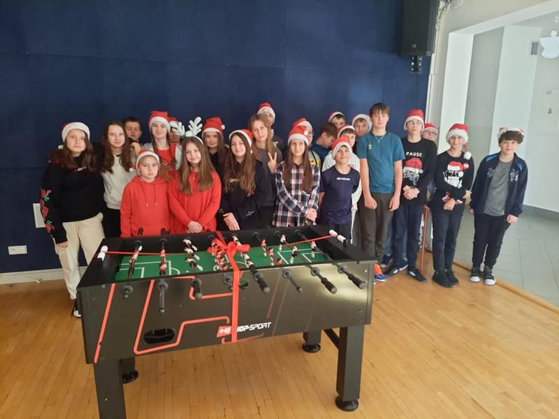 Strefa relaksu w naszej szkole zyskała przepiękną ozdobę -wysoką choinkę. Zakupiono też stół do piłkarzyków, który pozwoli aktywnie spędzać czas na przerwach naszym uczniom. Dziękujemy Radzie Rodziców za tę inicjatywę.
