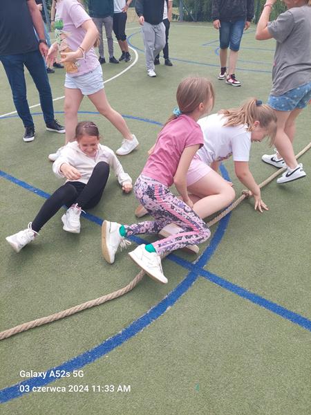 W naszej placówce 3 czerwca odbył się Dzień Dziecka dla klas 4-8. Wszyscy otrzymali lody, poczęstunek, mogli wziąć udział w ciekawych konkurencjach. W tym roku uczniowie mieli szansę zmierzyć się w przeciąganiu liny, kapkach, żonglerce, piłce nożnej, rzutach do kosza, w konkursie "Czym to pachnie?" oraz w zabawę w chowanego, która stała się już naszą tradycją. Podczas tego dnia z głośników płynęła muzyka, każdy miał dobry humor, a nauczyciele dbali o dobrą zabawę. To był naprawdę udany dzień!