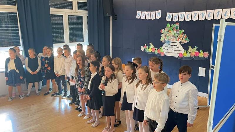 15 paźiernika w naszej szkole odbyła się akademia z okazji Dnia Nauczyciela przygotowana przez uczniów klasy 3 i Samorzad Uczniowski. Na to wydarzenie przybyli nasi kochani emeryci. Milo było ich znowu zobaczyć i goscić. Przedstawienie rozpoczęło się od tanecznego układu zaprezentowanego przez uczennice klas 4-8. Następnie obejrzeliśmy prezentację przedstawiajacą zdjęcia z "życia szkoły" na przestrzeni dwudziestu lat. Po piosence zaśpiewanej przez Joannę Kurek, klasa III wraz Panią Dorotą Sową wystąpiła w scenkach, które nas bardzo rozbawiły, a piosenki i podziękowania wzruszyły do łez. Na koniec wszyscy uczniowie zaśpiewali sto lat 🥰