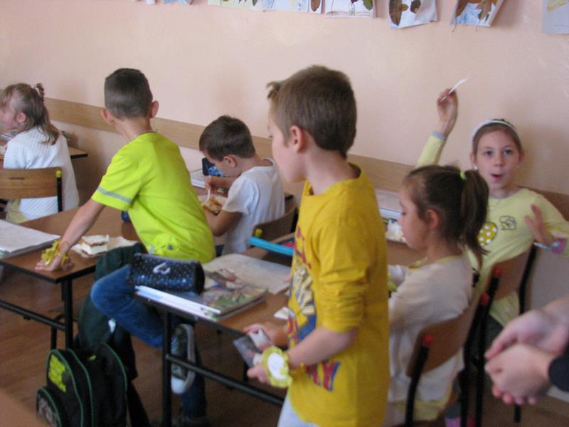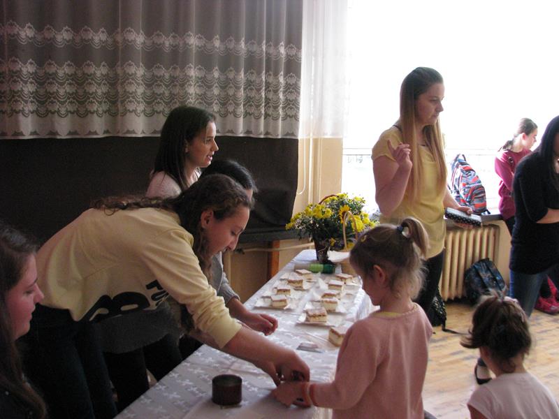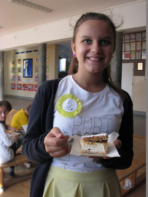 W naszej szkole odbył się Dzień Papieski. Członkowie Szkolnego Koła Caritas przygotowali i przeprowadzili tę uroczystość. Dziewczęta z klasy 3 gimnazjum sprzedawały uwielbiane przez Jana Pawła II kremówki, które wyprzedały się w mgnieniu oka. Dodatkową atrakcją była możliwość zniżki ceny kremówki, jeżeli kupujący ubrany był na biało-żółto. Oczywiście członkinie SKC zadbały również o piękny wystrój naszego stoiska. Reprezentował go powieszony przez nas obraz Papieża, który był przystrojony kwiatami i cytat z przesłaniem Papieża- Polaka, skierowany głównie do dzieci i młodzieży z naszej szkoły. Każde dziecko, które kupiło kremówkę dostawało obrazek ze św. Janem Pawłem II i innymi świętymi z modlitwą. Dodatkową niespodzianką były kotyliony z wizerunkiem Świętego, które były przypinane lub wiązane dzieciom na rękach. Każda klasa przygotowała tematyczną gazetkę poświęconą św. Janowi Pawłowi II.