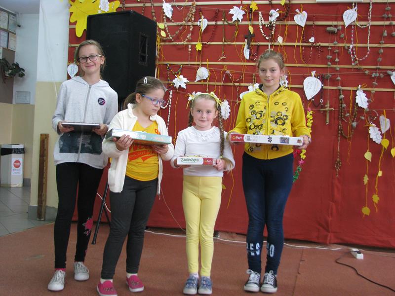 Wyróżnienia otrzymali: Patrycja Anielska kl. 2, Michał Kuzak kl. 2, Gabriela Knapik kl. 0A, Karolina Mucha kl. 0C, Kornelia Zięba kl. 4A, Martyna Kądziołka kl. 3A, Bartosz Zaręba kl. 4B, Weronika Gawron kl. 5, Nikola Kuchta kl. 4B, Małgorzata Kądziołka kl. 0B, Hanna Zaręba kl. 0B