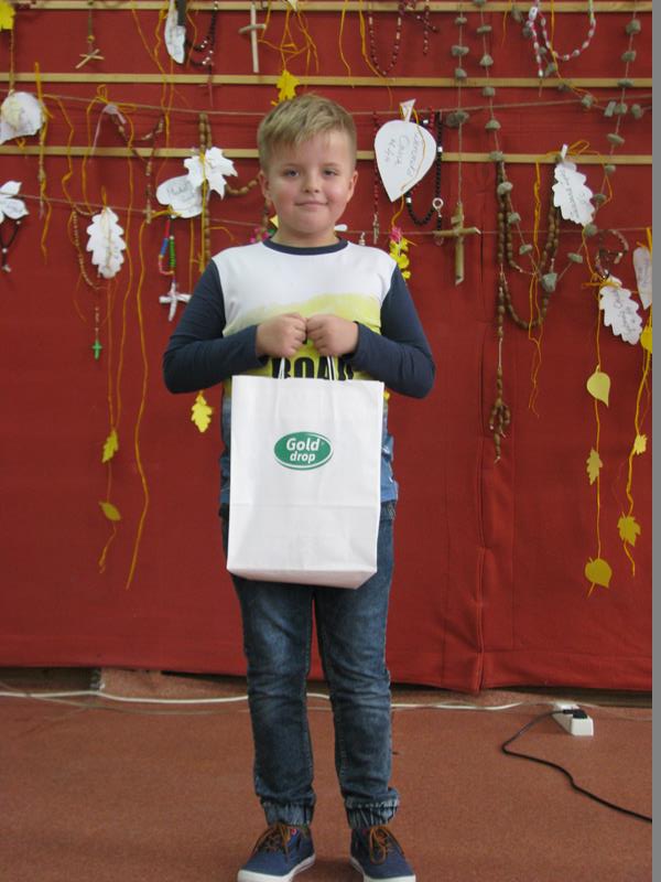 Zakup nagród dla wszystkich uczestników konkursu był możliwy dzięki funduszom zebranym podczas akcji SKC – sprzedaży owoców oraz hojności sponsorów. Bardzo dziękujemy pani Joannie Sułkowskiej i Ks. Maciejowi Skoczeń za wsparcie w organizacji Dnia Papieskiego.