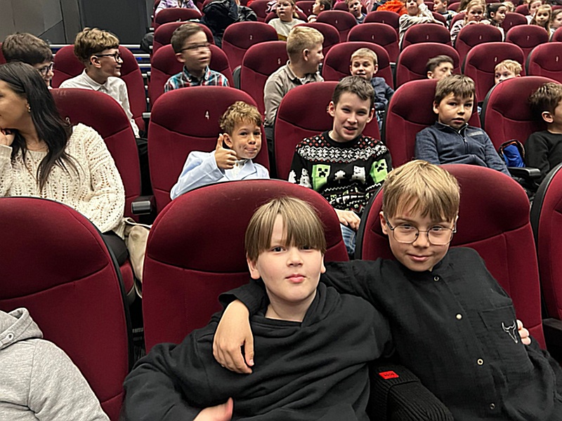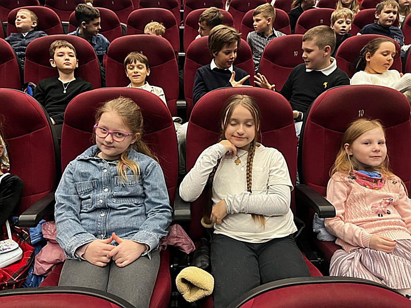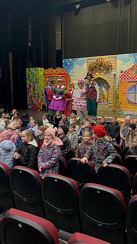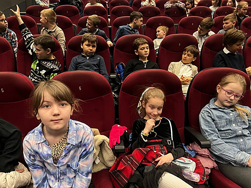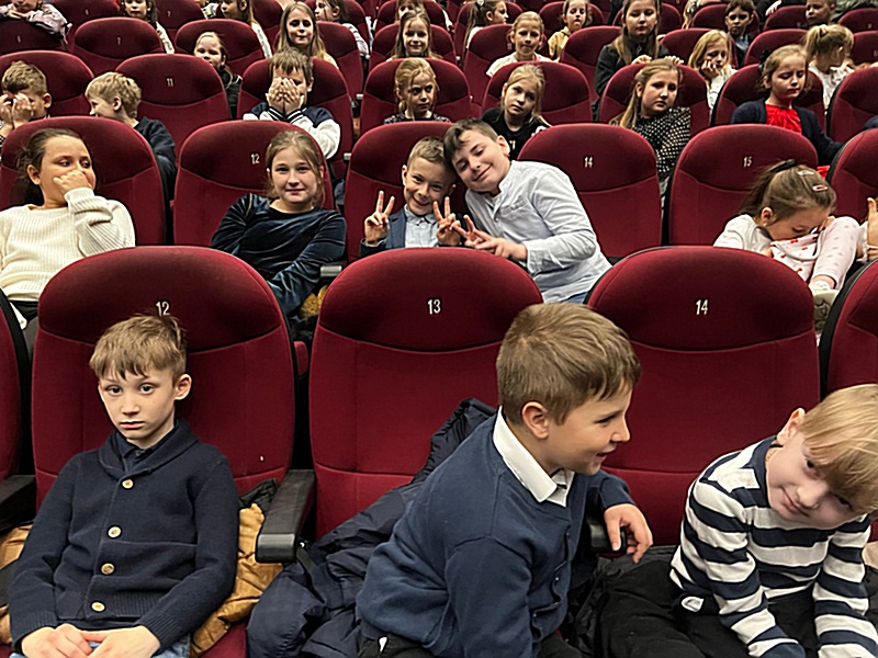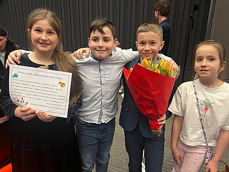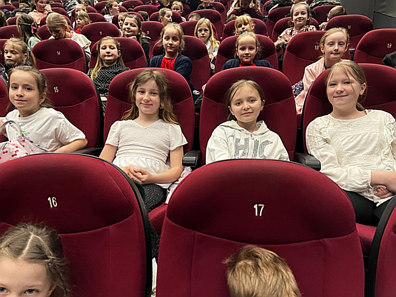 27.marca 2026r. w Międzynarodowym Dniu Teatru uczniowie klas 1-3 wzięli udział w wyjątkowym wydarzeniu kulturalnym. Pod opieką wychowawców udali się na spektakl teatralno-profilaktyczny pt. „Dziadek do orzechów – Dwa królestwa” w wykonaniu Teatru Muzycznego Forte. To widowiskowe przedstawienie połączyło klasyczną baśń z nowoczesną formą musicalu. Uczniowie podziwiali barwne kostiumy i dynamiczny taniec, śledząc losy Klary i jej dzielnego towarzysza. Spektakl pełnił również rolę profilaktyczną – uczył najmłodszych wiary we własne siły oraz wartości płynących z przyjaźni. Wizyta w teatrze była dla dzieci nie tylko lekcją wrażliwości estetycznej, ale także doskonałą okazją do wspólnej integracji poza murami szkoły. Niespodzianką było spotkanie z artystami po przedstawieniu, trzecioklasiści przekazali życzenia z okazji Święta Teatru oraz bukiet kwiatów na ręce odtwórczni głównej roli - Klary. Potem było wspólne zdjęcie na pamiątkę spotkania. Ten dzień na długo pozostanie w pamięci.