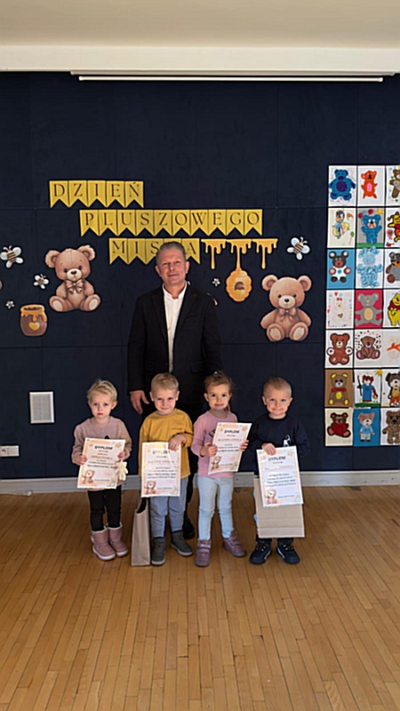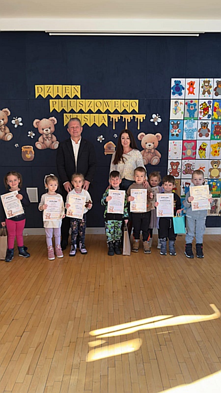 28 listopada odbyło się uroczyste podsumowanie konkursu plastycznego "Mój przyjaciel miś". Podczas spotkania ogłoszono wyniki oraz wręczono nagrody autorom najciekawszych prac. Rozdania nagród dokonał dyrektor szkoły Robert Piwowarczyk, gratulując dzieciom z oddziałów przedszkolnych kreatywności i zaangażowania.
