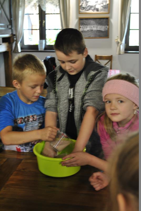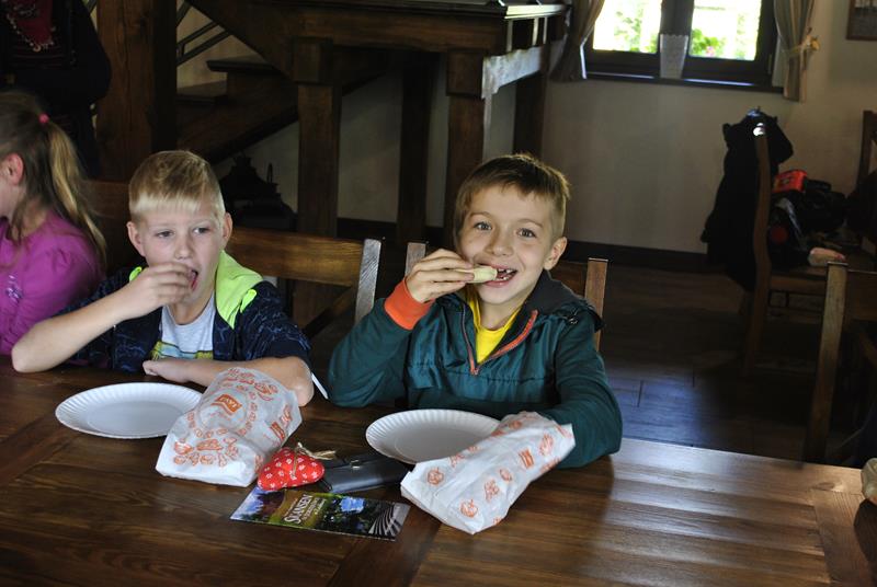 Jeszcze we wrześniu odwiedziliśmy Laskową i Skansen na Jedrzejkówce, gdzie poznaliśmy historię powstawania chleba, od kłosa do bochenka. A co najważniejsze sami wyrabialiśmy ciasto na pyszne pieczone potem na blasze pieca kuchennego podpłomyki. Była to bardzo ciekawa „ podróż w przeszłość ”, a podpłomyki smakowały wybornie.