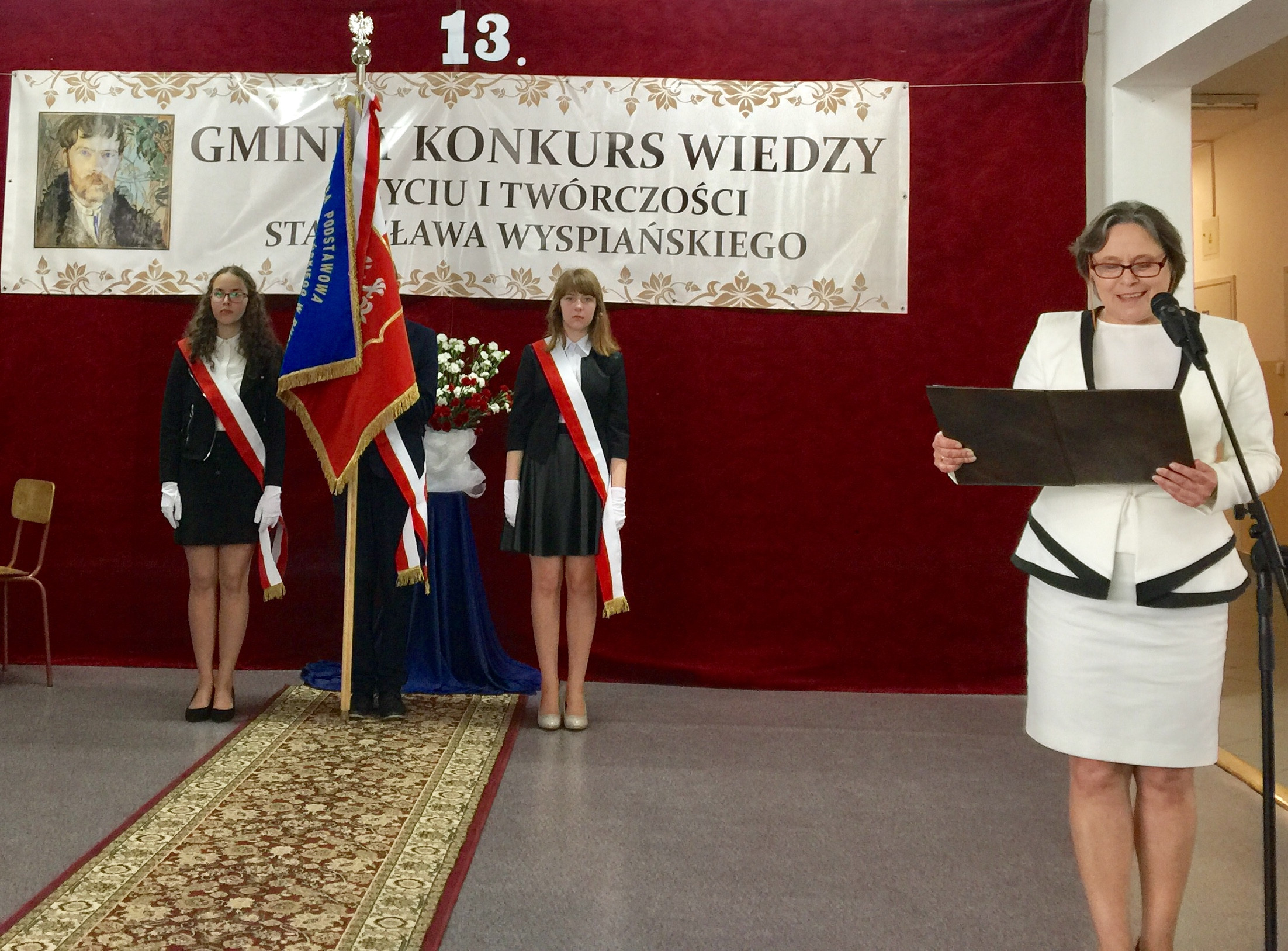 Pani Dyrektor Danuta Dębska podkreśliła w swoim przemówieniu, jak wielkim wydarzeniem jest dzień nadania Sztandaru dla całej szkoły. Oświadczyła, że Sztandar, który miała zaszczyt przyjąć w imieniu naszej społeczności szkolnej, jest symbolem więzi integrującym szkołę i jej najbliższe środowisko. Będzie znakiem łączącym tych, którzy opuszczają progi szkoły, obecnych, jak i przyszłych uczniów. To również znak rozpoznawczy, symbol naszego zakorzenienia w historii i tradycji Polski - Naszej Ojczyzny. Zwracając się szczególnie do uczniów, podkreśliła, że dokonując życiowych wyborów powinni kierować się honorem, uczciwością, szacunkiem i skromnością oraz pamiętać o tym, że są spadkobiercami dorobku historyczno-kulturowego Polaków i powinni czerpać z dziejów Polski to, co najpiękniejsze.