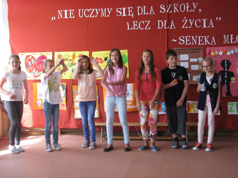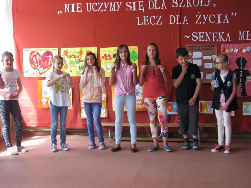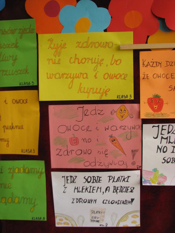 Uczniowie naszej szkoły realizowali projekt dotyczący zdrowego odżywiania się. Zadaniami do wykonania przez poszczególne klasy było: wykonanie plakatu o zdrowej żywności, przygotowanie pięknie nakrytego stołu na wybraną okazję oraz przedstawienie scenki związanej z projektem. Wszyscy podeszli do zadań z bardzo twórczą wyobraźnią a oto efekty.