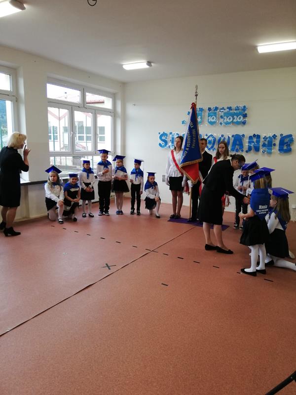 W tej wyjątkowej chwili pani Dyrektor pogratulowała dzieciom zaprezentowanych umiejętności. Niespodziankę swoim młodszym kolegom sprawili uczniowie klas II a i b, których przedstawiciele wręczyli pierwszoklasistom miłe upominki. Potem przyszedł czas na pamiątkowe zdjęcia z przybyłymi na uroczystość gośćmi, na życzenia, podziękowania, uściski. Od Pana Wójta Gminy Limanowa uczniowie dostali odblaskowe elementy, które zapewnią im bezpieczeństwo w drodze do szkoły.