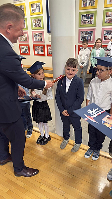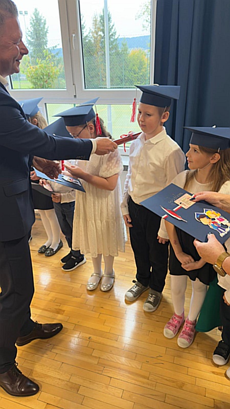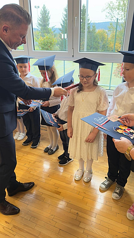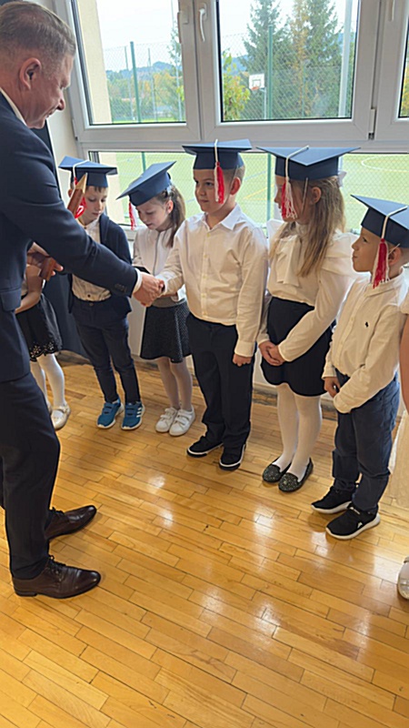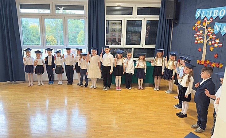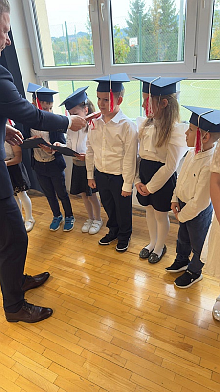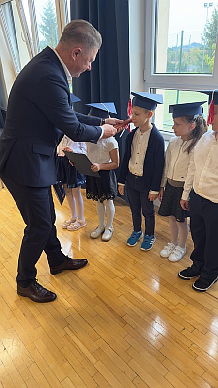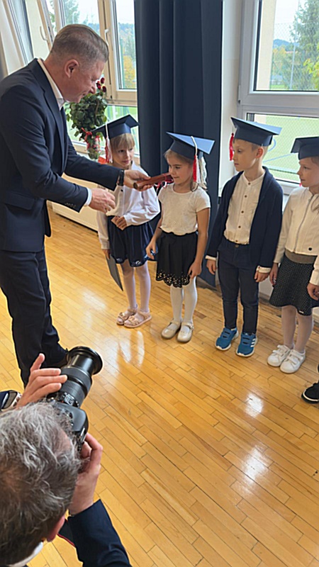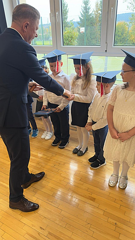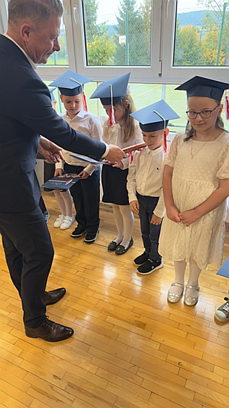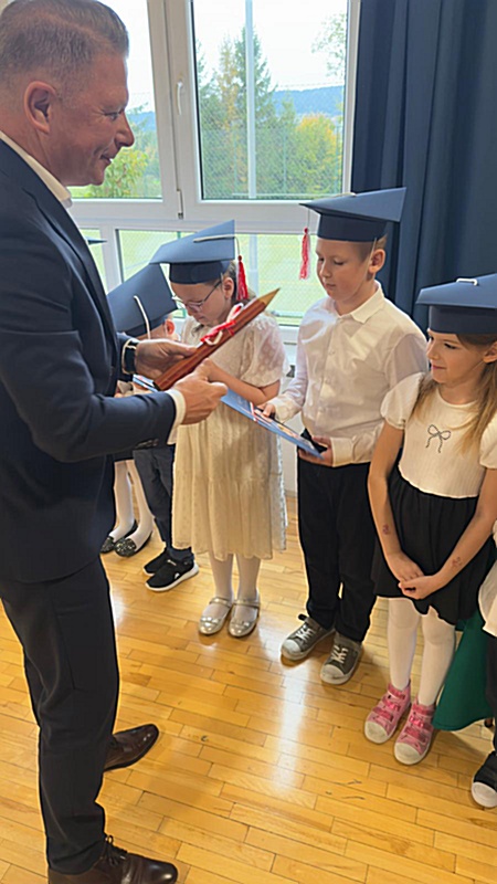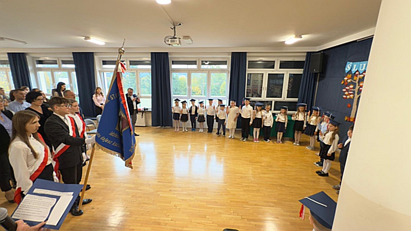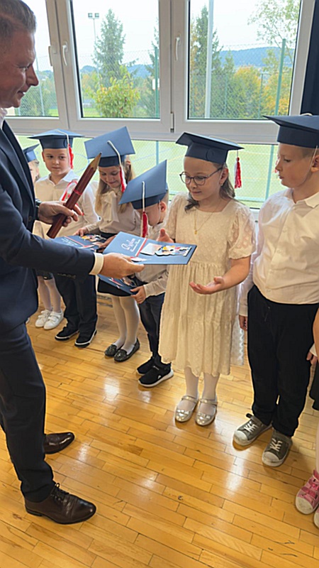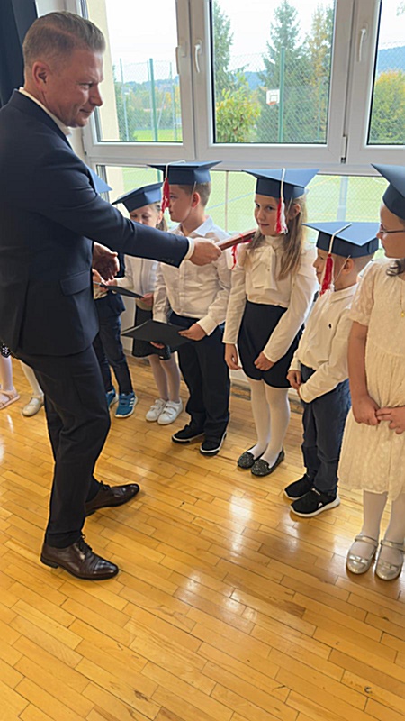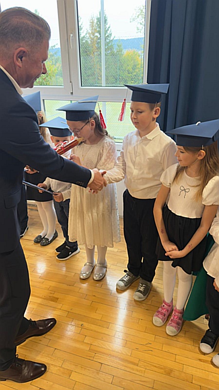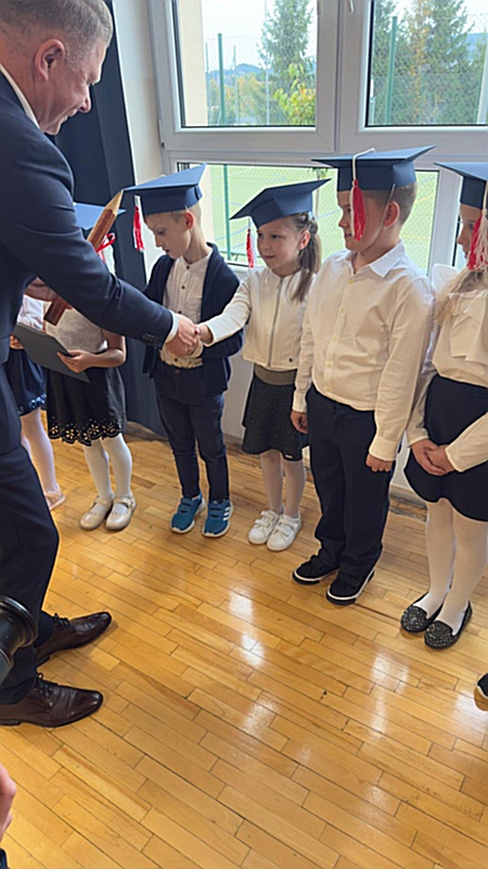Dnia 17 października 2025r. do grona naszych uczniów oficjalnie zostali przyjęci kolejni pierwszoklasiści. Uczniowie klasy pierwszej przygotowywali się do tej uroczystości od początku roku szkolnego. Dzielnie uczyli się piosenek, wytrwale ćwiczyli recytację. W tym ważnym dniu, od samego rana panowała świąteczna atmosfera. Pierwszacy ubrani w strój galowy, piękna dekoracja sali, przygotowany sprzęt nagłaśniający i nagrywający to wszystko po to, by ślubowanie pierwszaków wypadło jak najbardziej uroczyście. Z pomocą uczniów klasy czwartej dzieci zaprezentowały swoje umiejętności. Po przez recytowanie wierszy, śpiewanie piosenek odgrywanie scenek udowodniły, że są gotowe do sumiennej pracy w szkole. W podniosłej atmosferze, w obecności Wójta Gminy Limanowa Jana Skrzekuta, Dyrektor Gminnego Zespołu Obsługi Szkół Edyty Król, Dyrektora Szkoły Roberta Piwowarczyka i Wicedyrektor Beaty Ryś, rodziców i nauczycieli, przed pocztem sztandarowym pierwszacy ślubowali być dobrymi Polakami, godnie reprezentować szkołę, swym zachowaniem i nauką sprawiać radość rodzicom i nauczycielom. Po złożeniu ślubowania pan dyrektor Robert Piwowarczyk dokonał symbolicznego pasowania, dotykając ołówkiem ramion swoich podopiecznych, wręczając im pamiątkowe dyplomy i legitymacje szkolne. Następnie koleżanki i koledzy z klasy drugiej życzyli pierwszakom sukcesów w nauce, zapewnili o pomocy i opiece starszych kolegów. Naszym najmłodszym uczniom życzymy samych sukcesów i radości ze zdobywanej wiedzy.