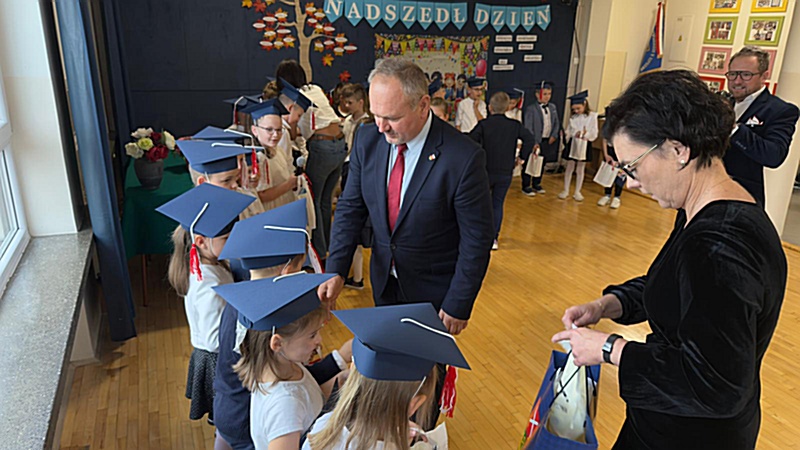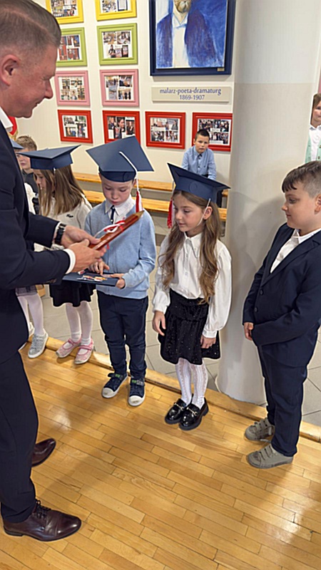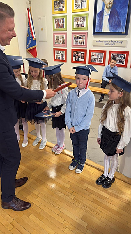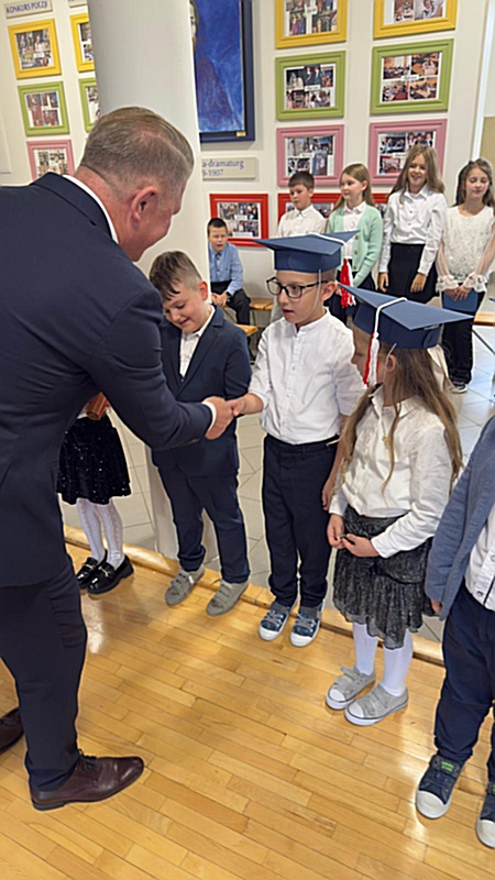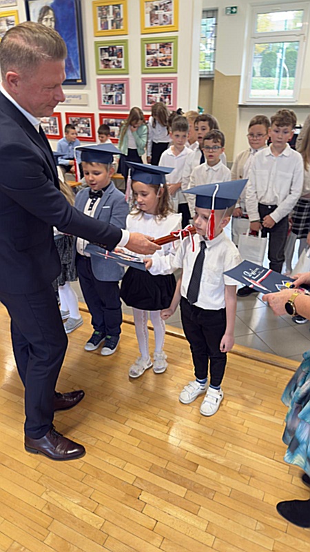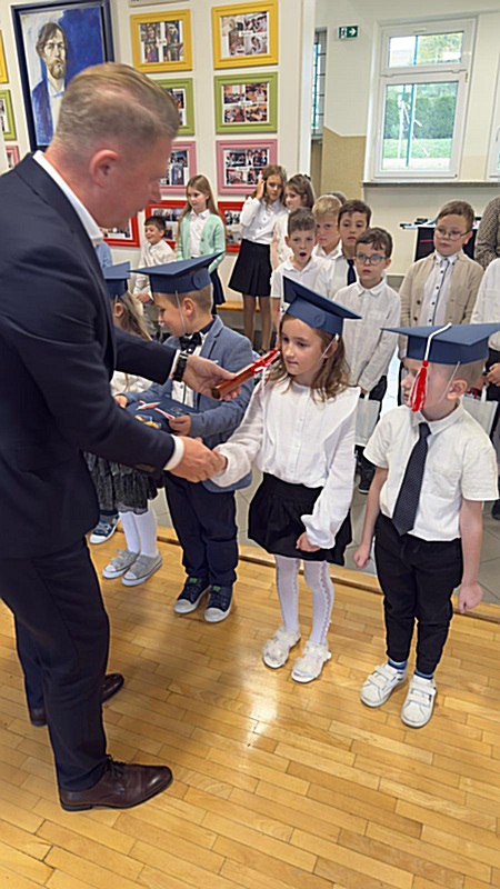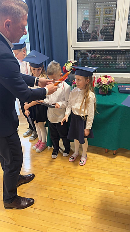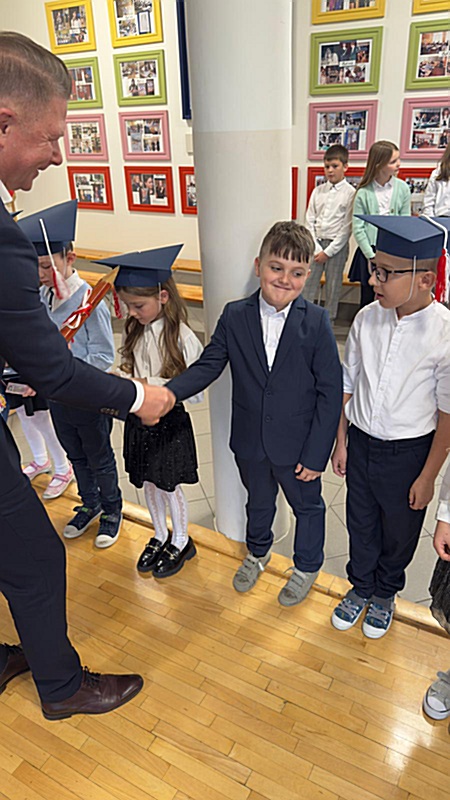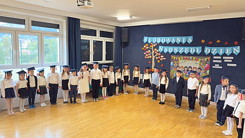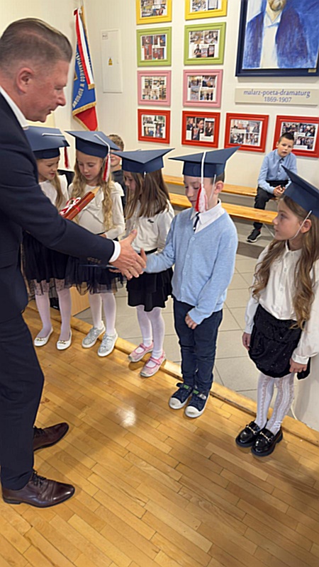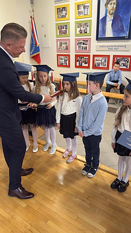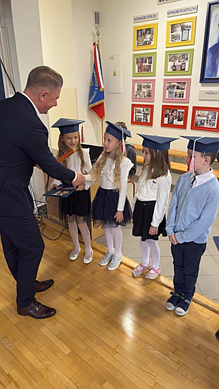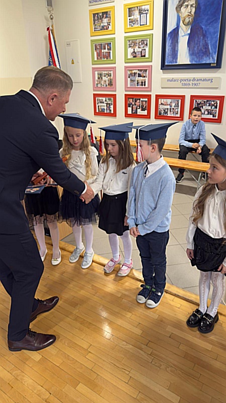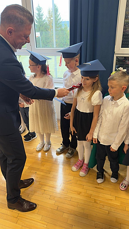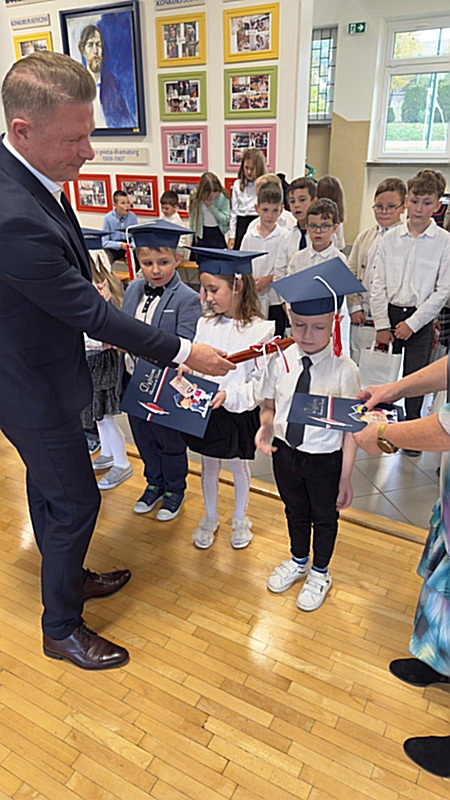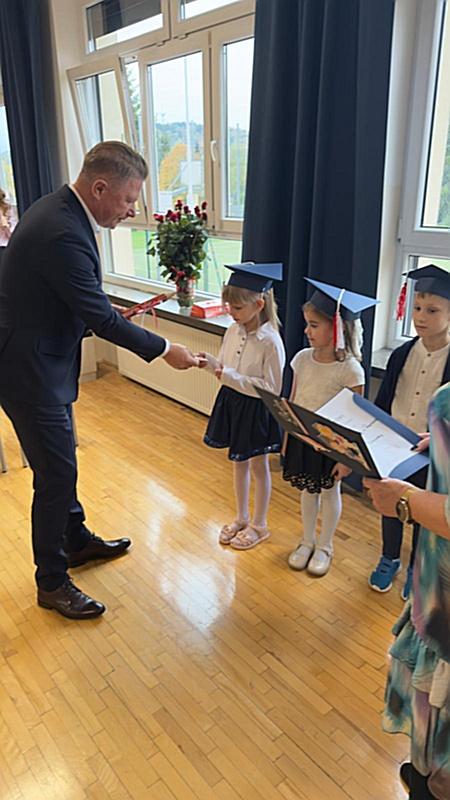 Dnia 17 października 2025r. do grona naszych uczniów oficjalnie zostali przyjęci kolejni pierwszoklasiści. Uczniowie klasy pierwszej przygotowywali się do tej uroczystości od początku roku szkolnego. Dzielnie uczyli się piosenek, wytrwale ćwiczyli recytację. W tym ważnym dniu, od samego rana panowała świąteczna atmosfera. Pierwszacy ubrani w strój galowy, piękna dekoracja sali, przygotowany sprzęt nagłaśniający i nagrywający to wszystko po to, by ślubowanie pierwszaków wypadło jak najbardziej uroczyście. Z pomocą uczniów klasy czwartej dzieci zaprezentowały swoje umiejętności. Po przez recytowanie wierszy, śpiewanie piosenek odgrywanie scenek udowodniły, że są gotowe do sumiennej pracy w szkole. W podniosłej atmosferze, w obecności Wójta Gminy Limanowa Jana Skrzekuta, Dyrektor Gminnego Zespołu Obsługi Szkół Edyty Król, Dyrektora Szkoły Roberta Piwowarczyka i Wicedyrektor Beaty Ryś, rodziców i nauczycieli, przed pocztem sztandarowym pierwszacy ślubowali być dobrymi Polakami, godnie reprezentować szkołę, swym zachowaniem i nauką sprawiać radość rodzicom i nauczycielom. Po złożeniu ślubowania pan dyrektor Robert Piwowarczyk dokonał symbolicznego pasowania, dotykając ołówkiem ramion swoich podopiecznych, wręczając im pamiątkowe dyplomy i legitymacje szkolne. Następnie koleżanki i koledzy z klasy drugiej życzyli pierwszakom sukcesów w nauce, zapewnili o pomocy i opiece starszych kolegów. Naszym najmłodszym uczniom życzymy samych sukcesów i radości ze zdobywanej wiedzy.