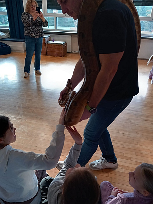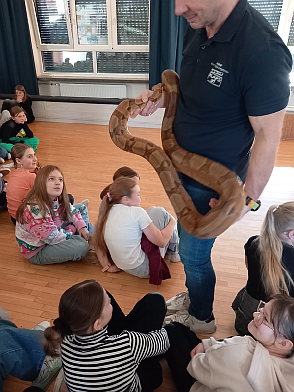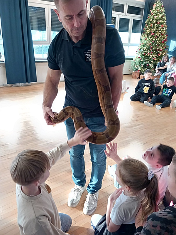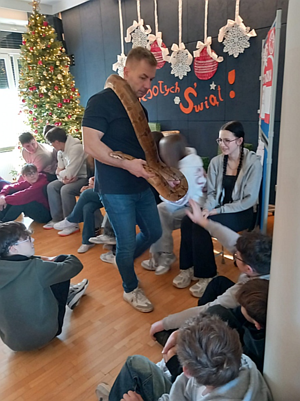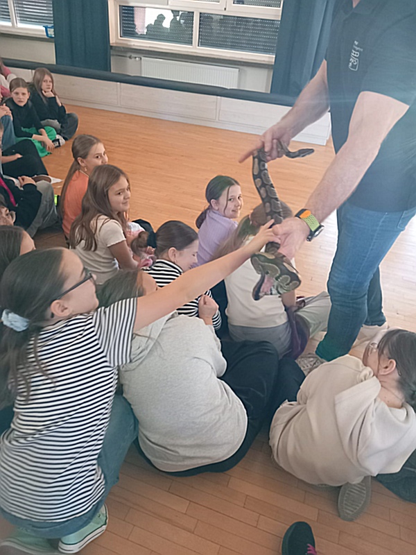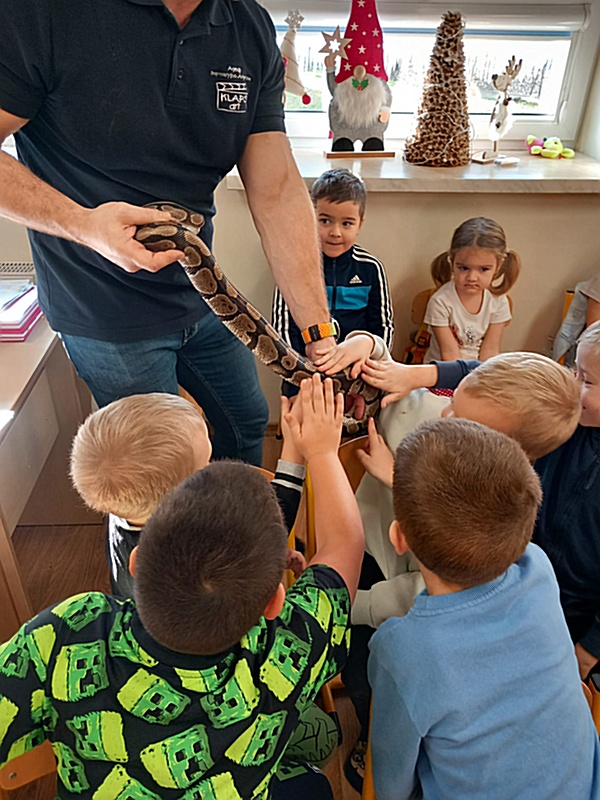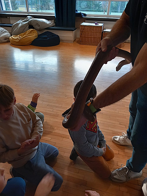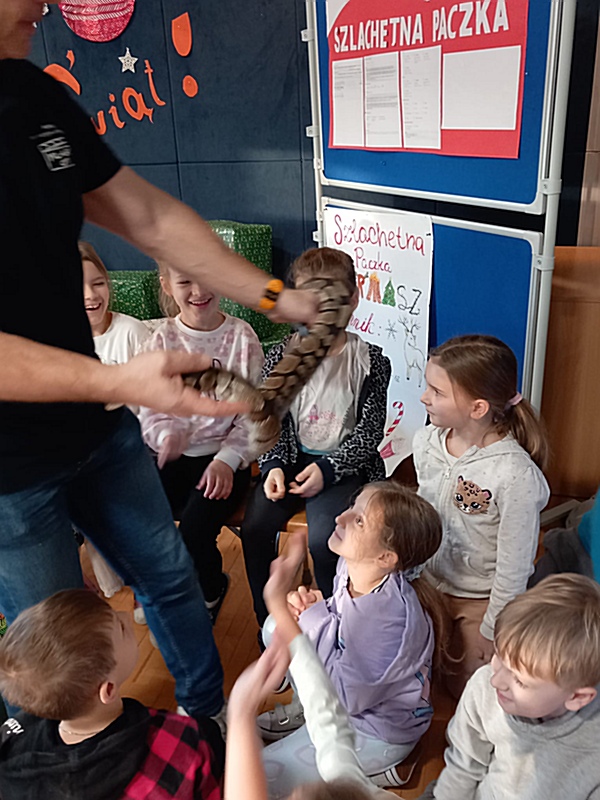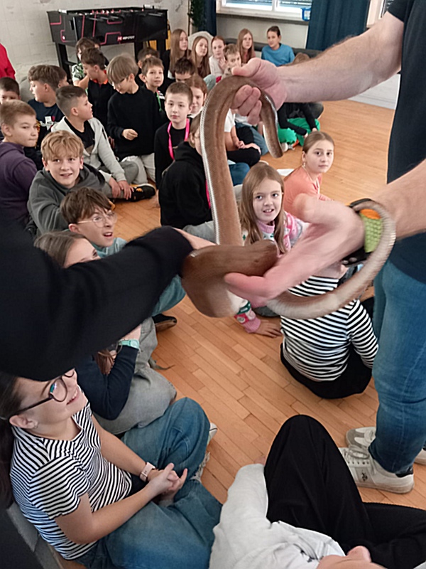 W dniu dzisiejszym cała społeczność szkolna uczestniczyła w zajęciach edukacyjnych z żywymi zwierzętami – gadami. Dzieci z oddziałów przedszkolnych oraz uczniowie klas 1-8 mieli okazję na przykładzie prawdziwych zwierząt – węży uczyć się o ich biologii, zachowaniu i roli w ekosystemie. Taka lekcja to wyjątkowe doświadczenie, które pozwoliło uczniom nie tylko zobaczyć z bliska, ale też dotknąć te niezwykłe zwierzęta, zamiast tylko o nich czytać w podręcznikach.