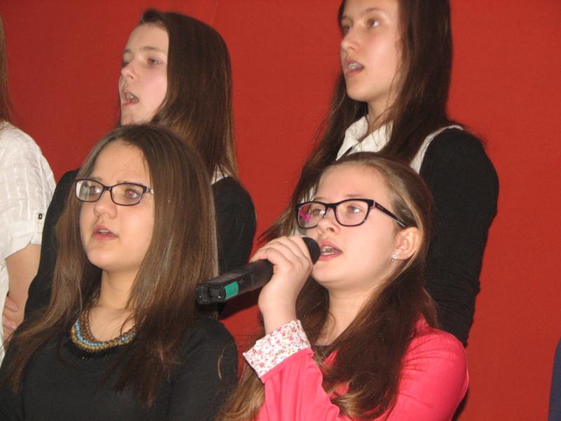 Widzowie mieli okazję usłyszeć piękne utwory religijne w wykonaniu chóru z naszej szkoly. Po raz kolejny przedstawili nam piękny wokal, którym byliśmy naprawdę zachwyceni. Poezyjny charakter akademii podkeśliły uczennice, recytując wiersze.